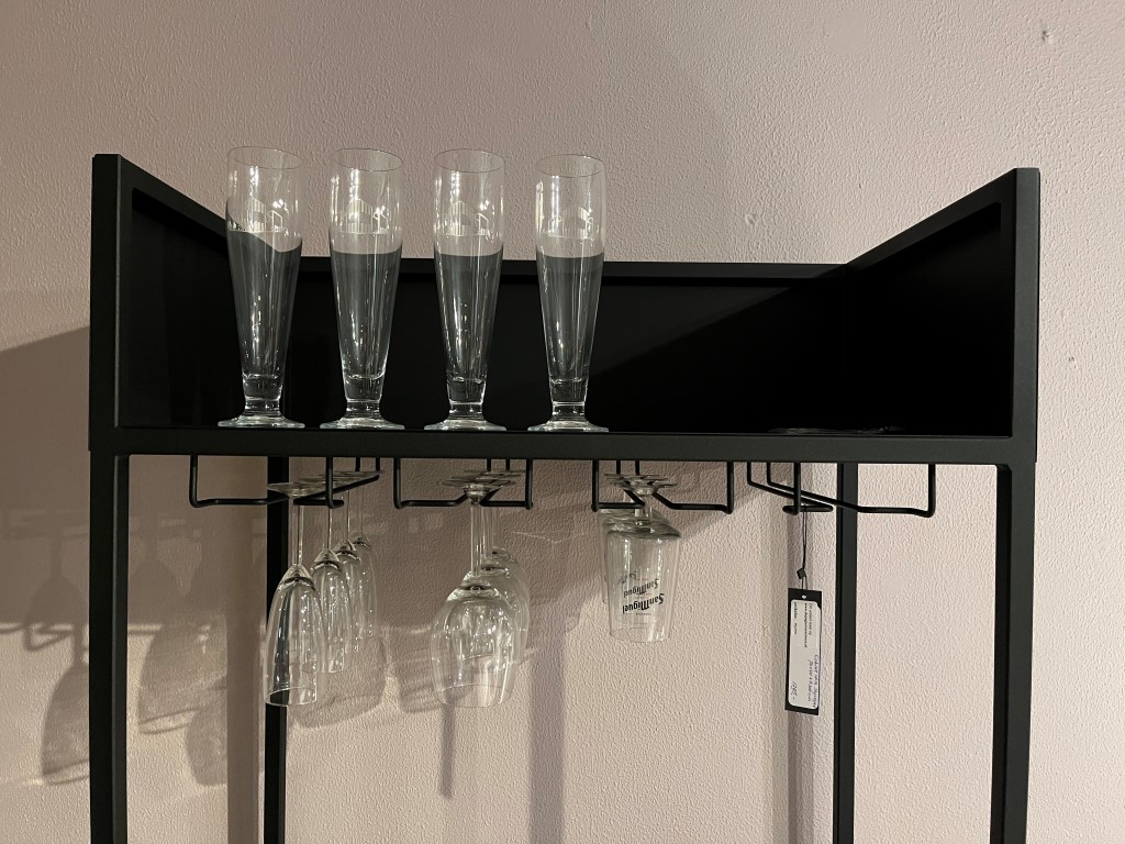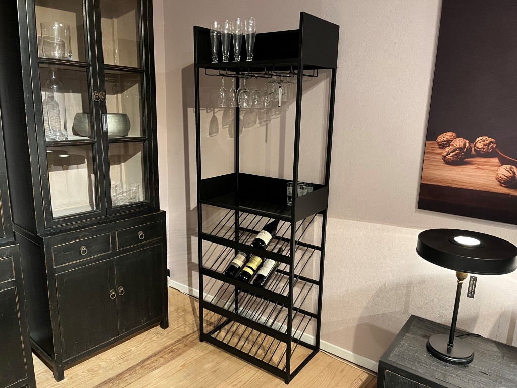 Wijnkast ‘Skyscraper’, gemaakt van metaal en glas.