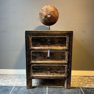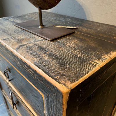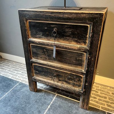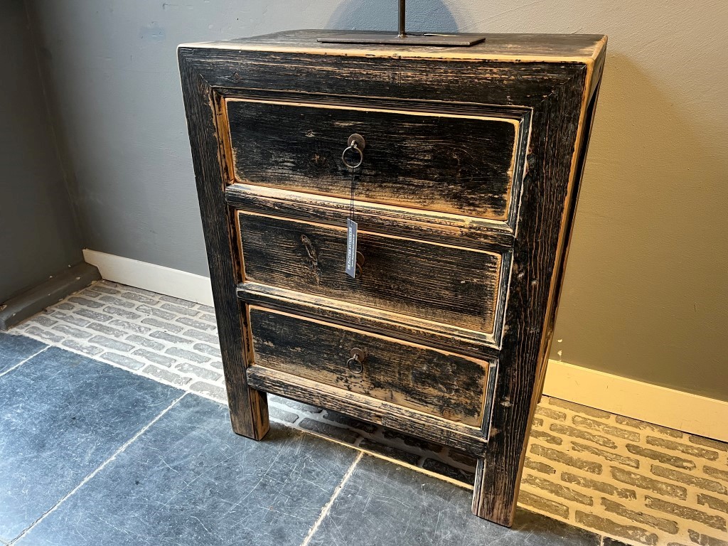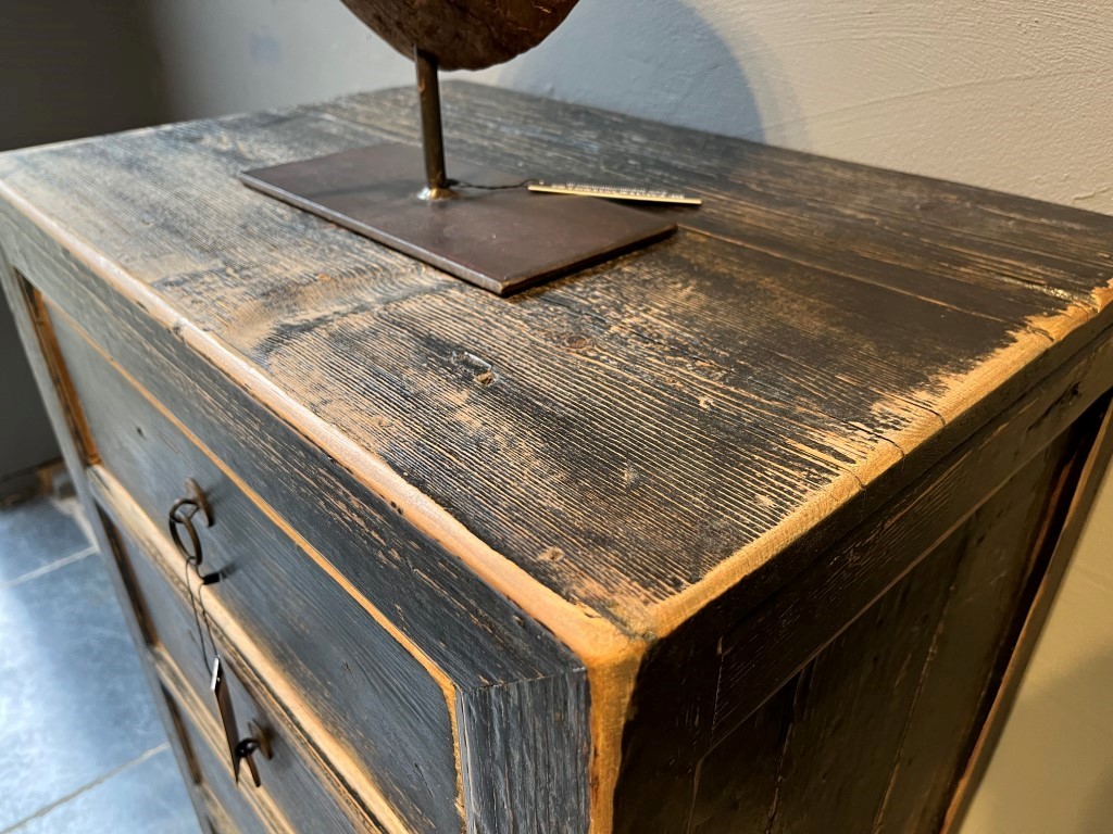 Ladekastje ‘Odessa’, uitgevoerd in zwart old pine hout. Ook in andere kleuren verkrijgbaar.
