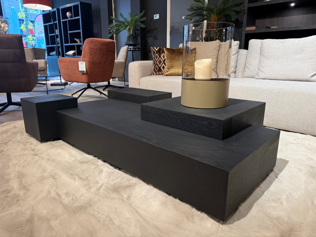 Salontafel ‘Navajun’, gemaakt van antraciet gekleurd eikenhout.