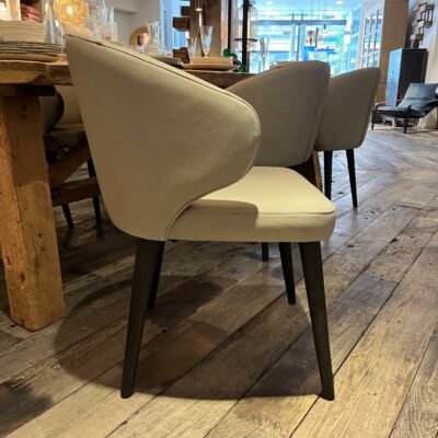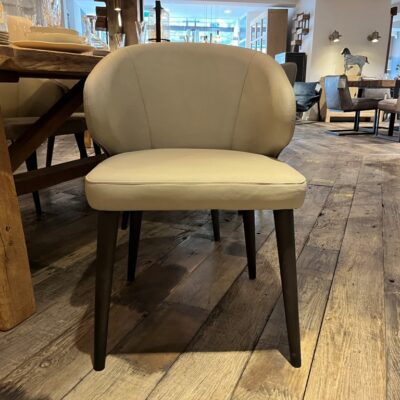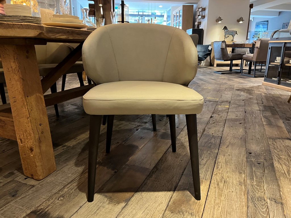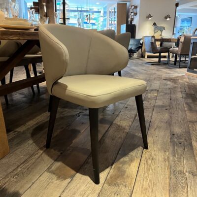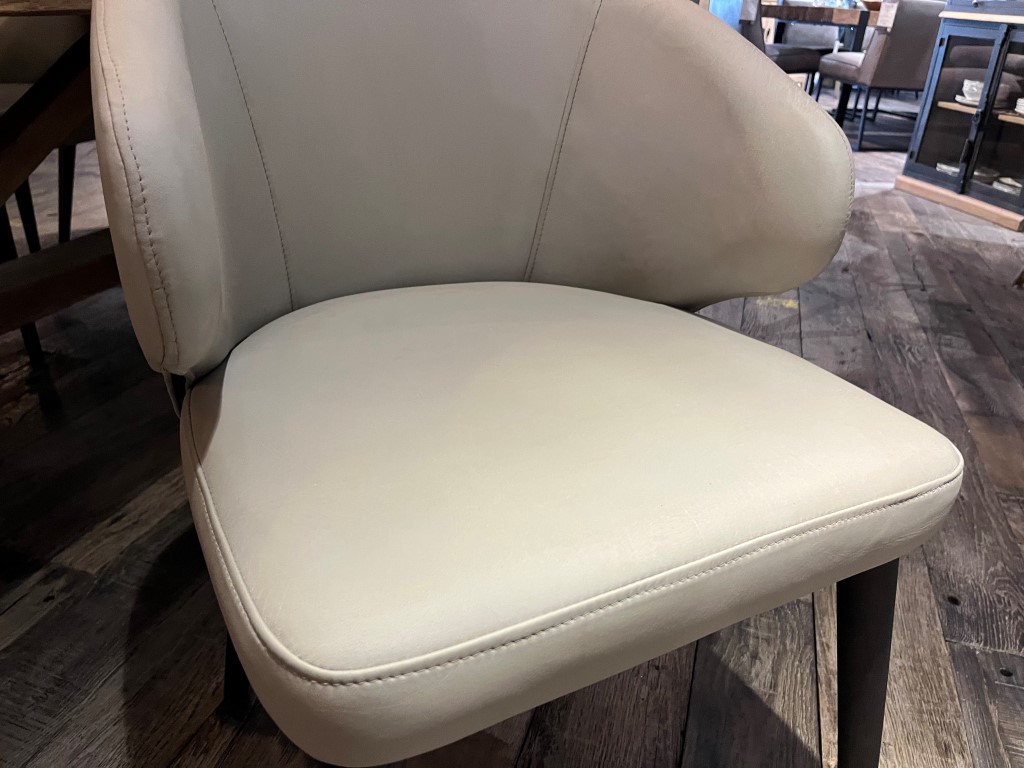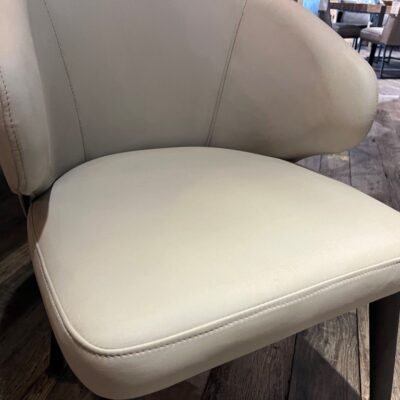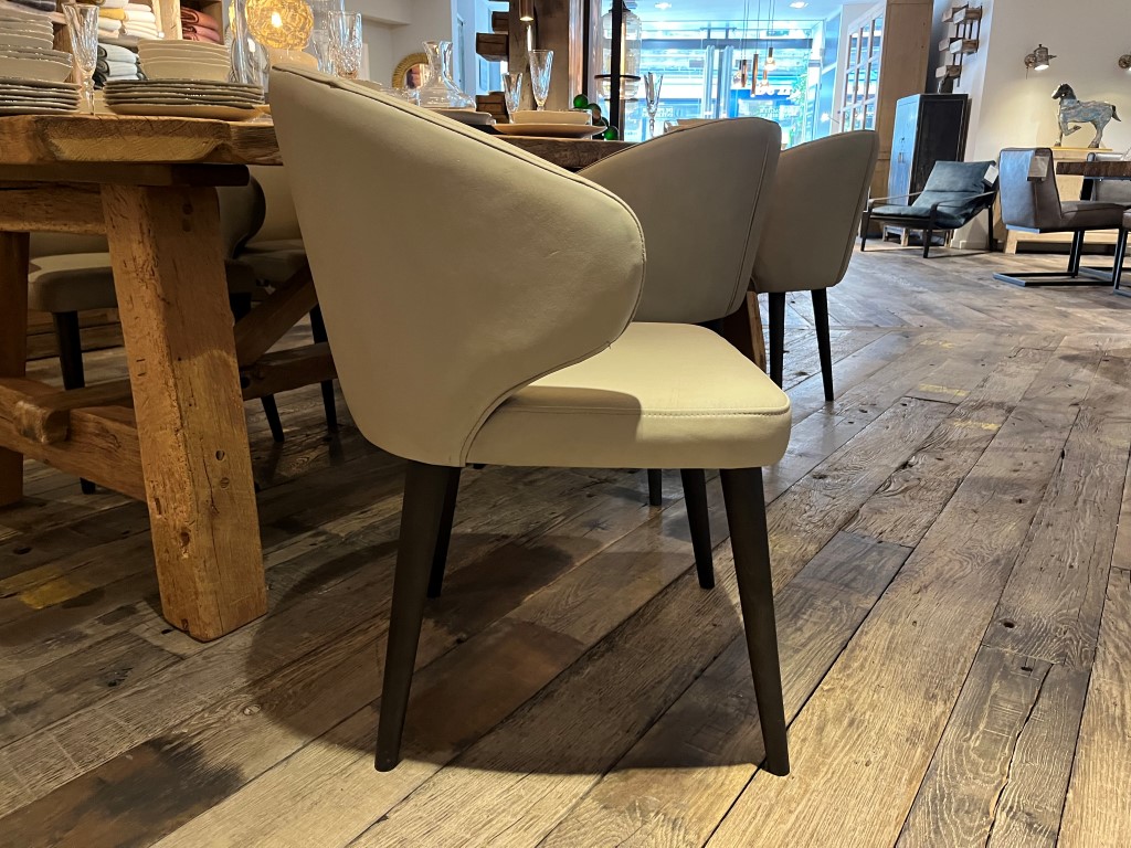 Stoel Janice, uitgevoerd in leder: Concrete – Matt’. Pootkleur: Cuban Antique.