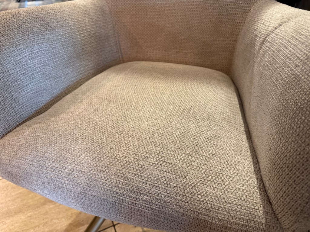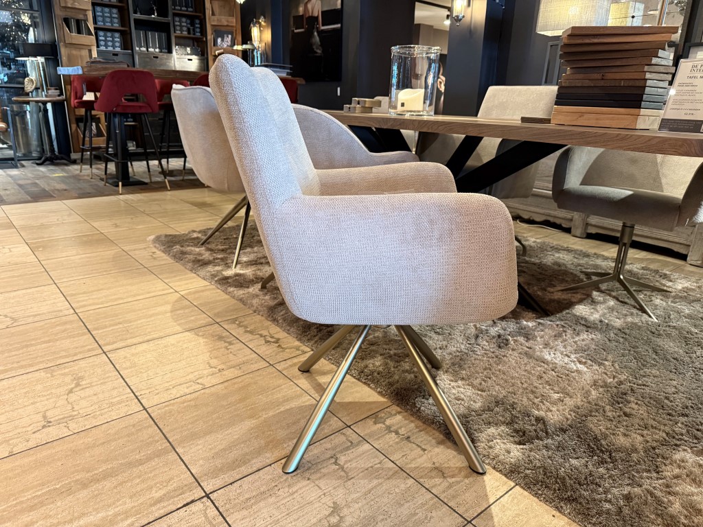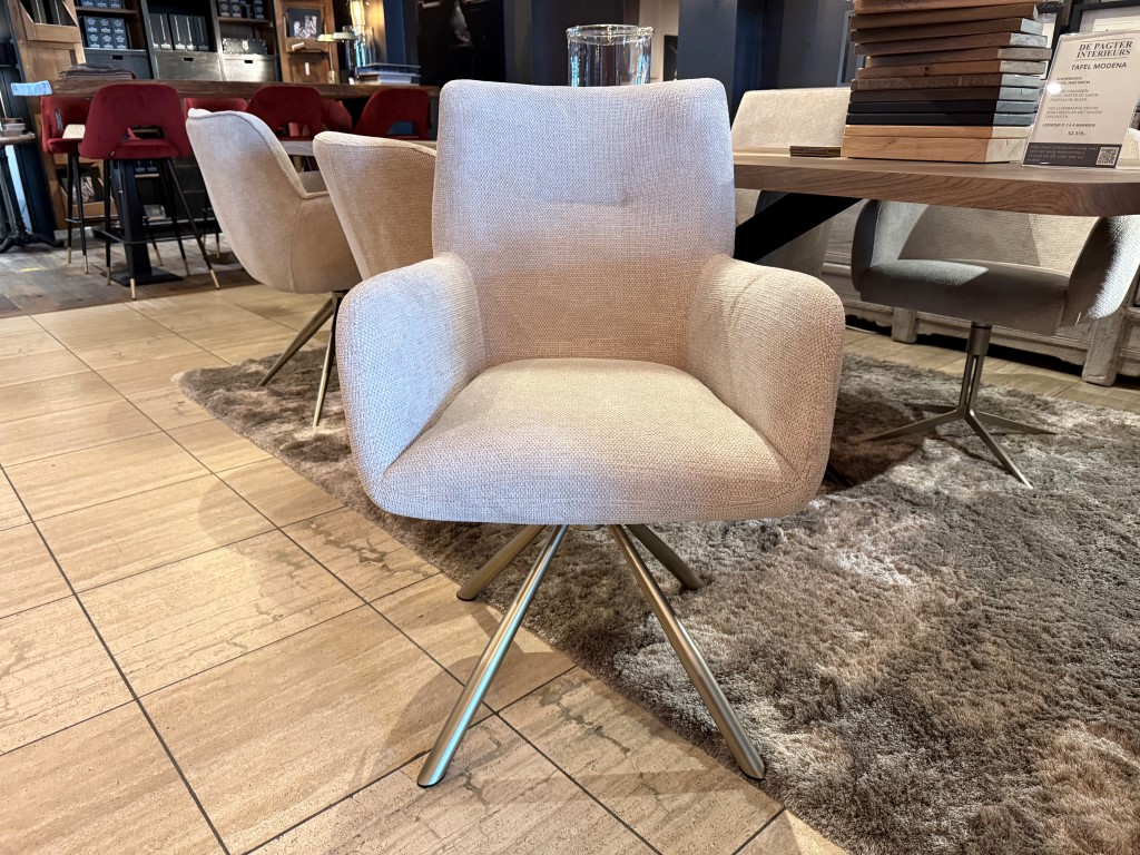 Eetkamerstoel Balestand, met armleuning en draaipoot (C), uitgevoerd in stof: Mito Beige (SG1).