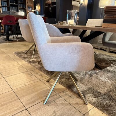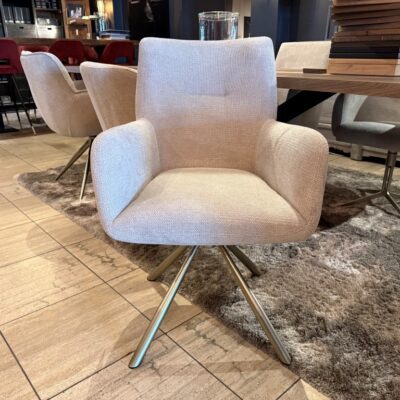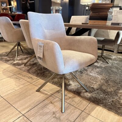 Eetkamerstoel Balestand, met armleuning en draaipoot (C), uitgevoerd in stof: Mito Beige (SG1).