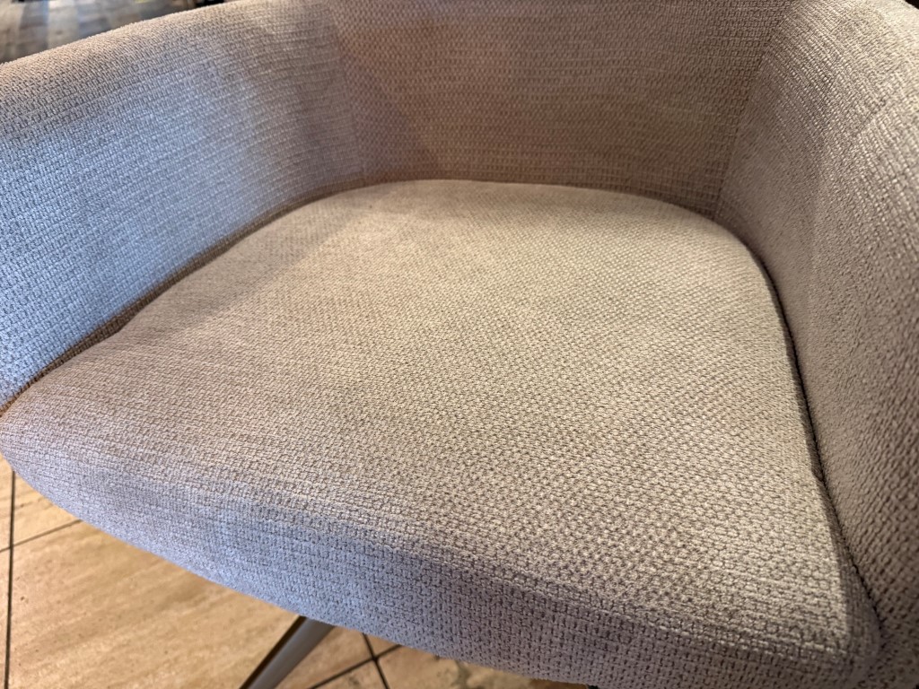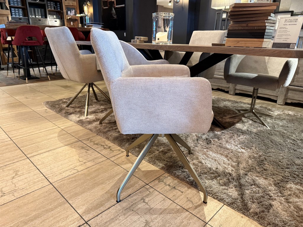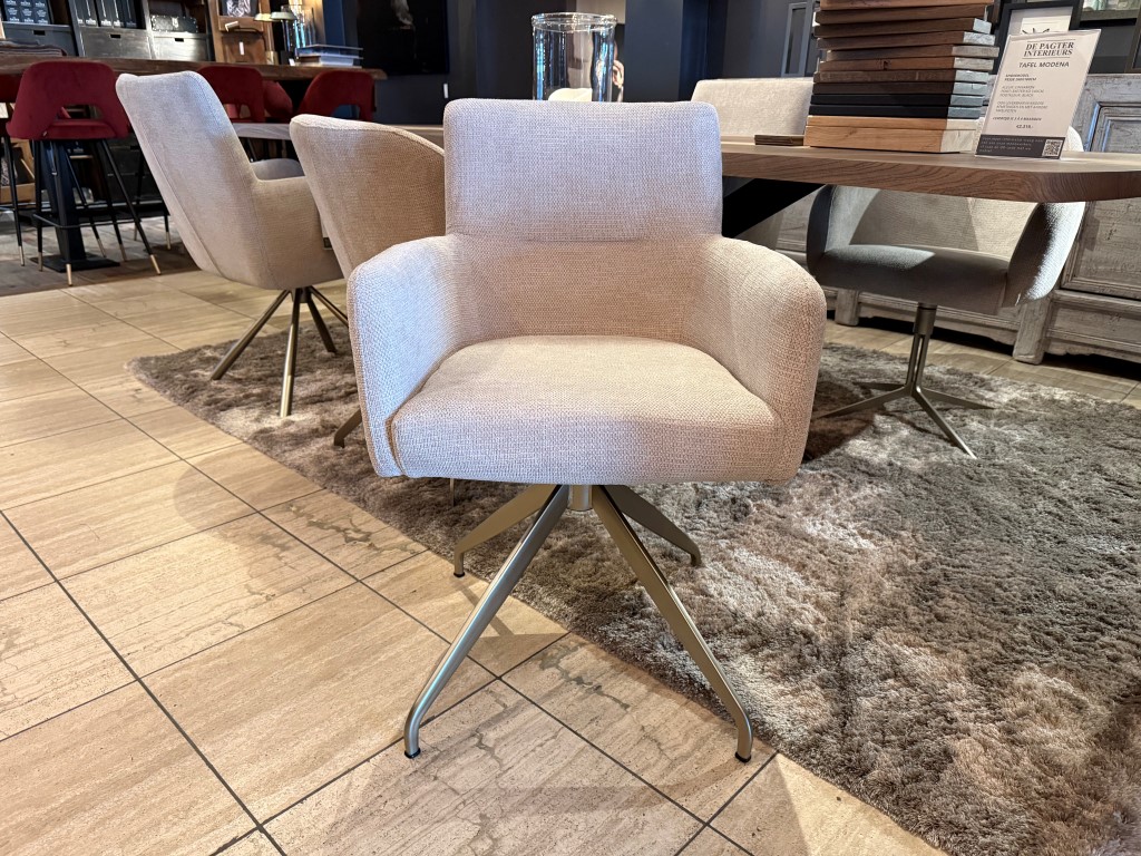 Eetkamerstoel Jondal, met armleuning en draaipoot (R), uitgevoerd in stof: Mito Beige (SG1).