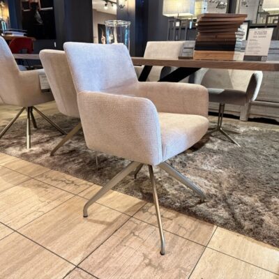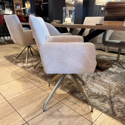 Eetkamerstoel Jondal, met armleuning en draaipoot (R), uitgevoerd in stof: Mito Beige (SG1).