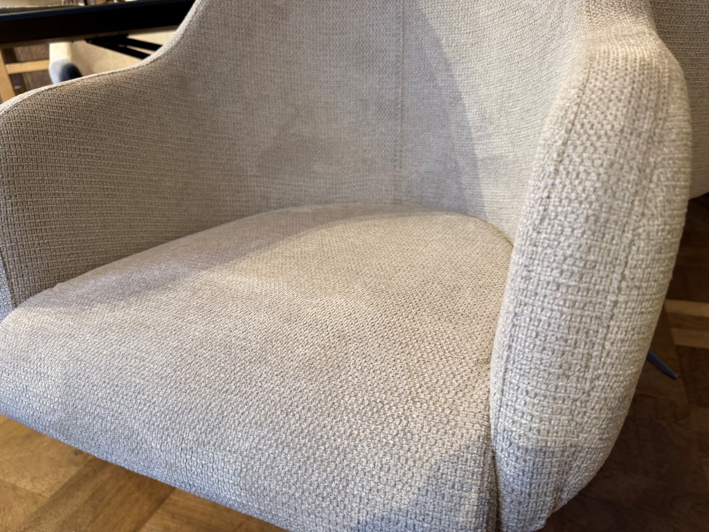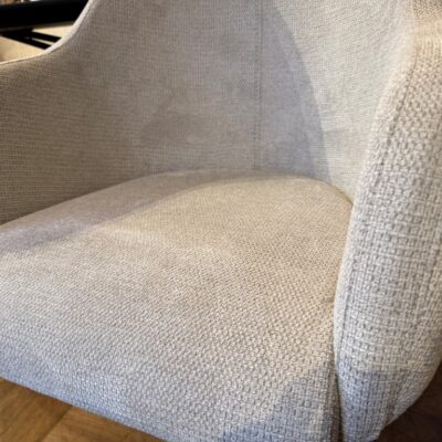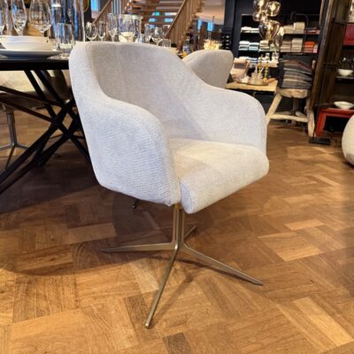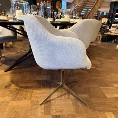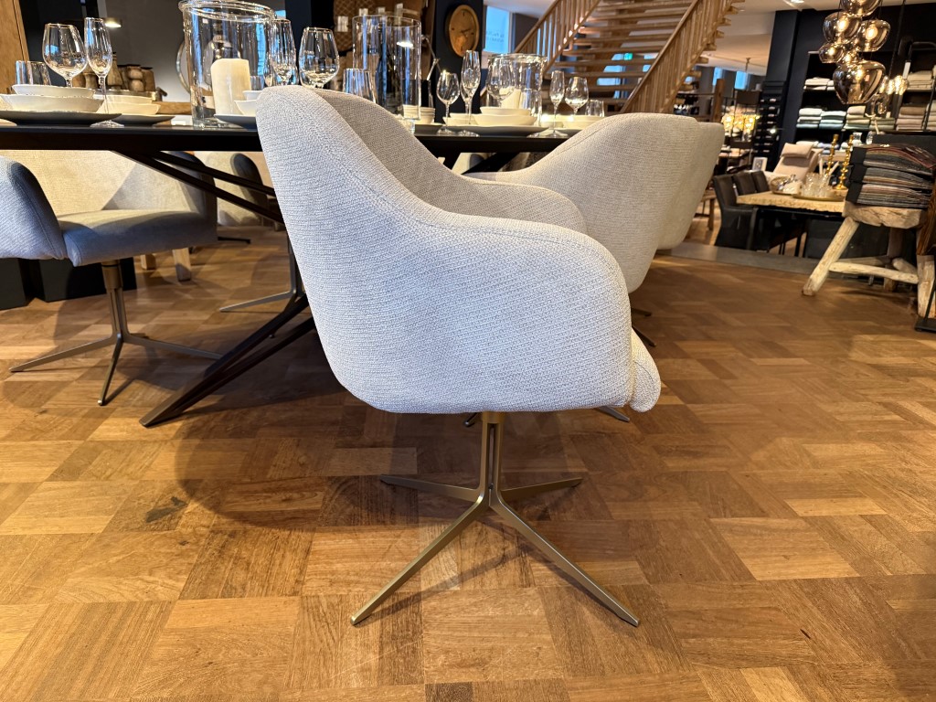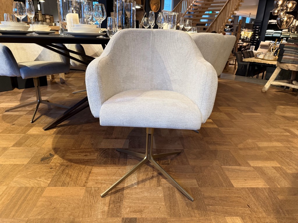 Eetkamerstoel Molde, met armleuning en draaipoot, uitgevoerd in stof: Mito Beige (SG1).