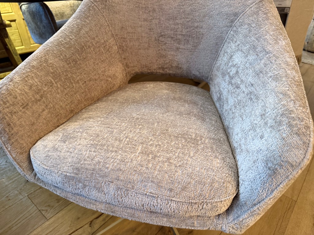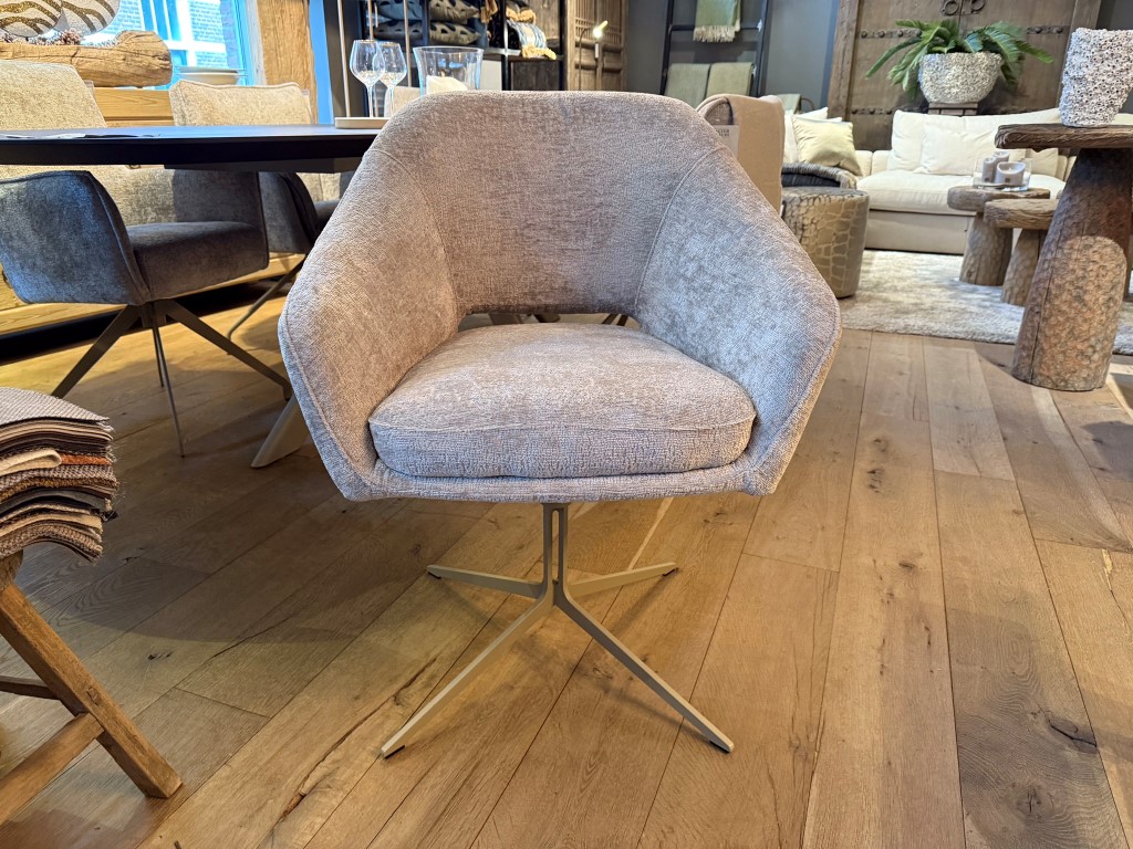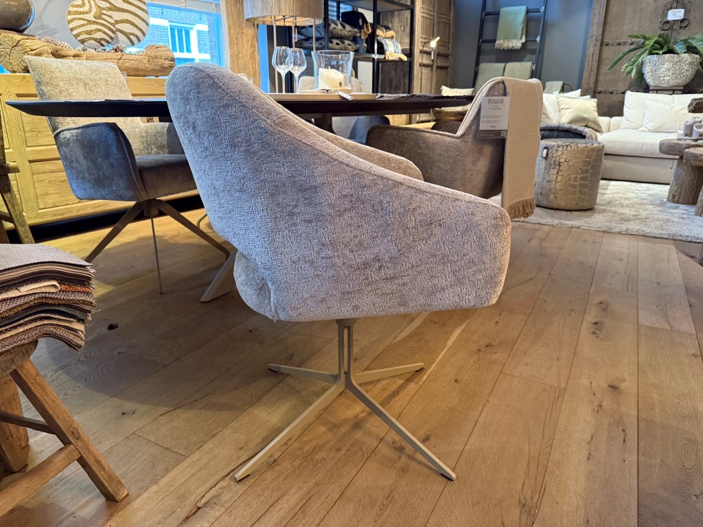 Eetkamerstoel Rafina, met armleuning en draaipoot (G), uitgevoerd in stof: Trenza Taupe (SG2).