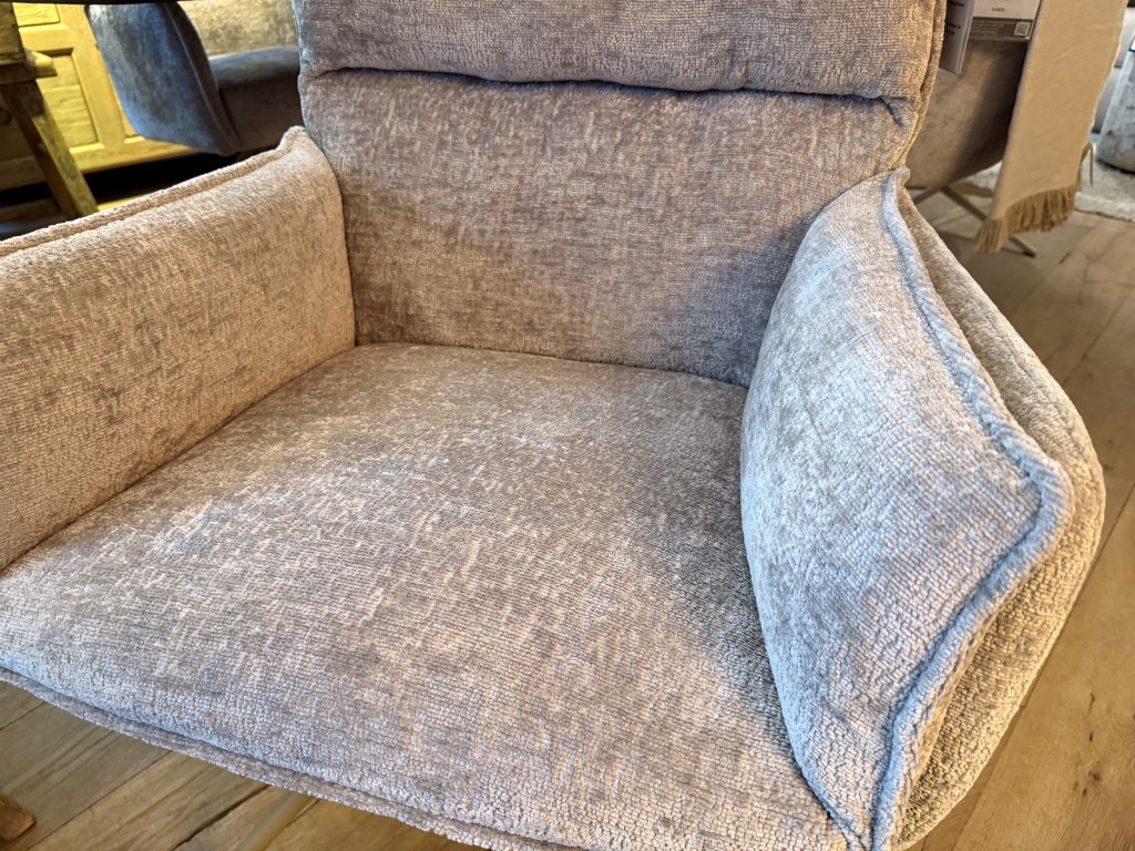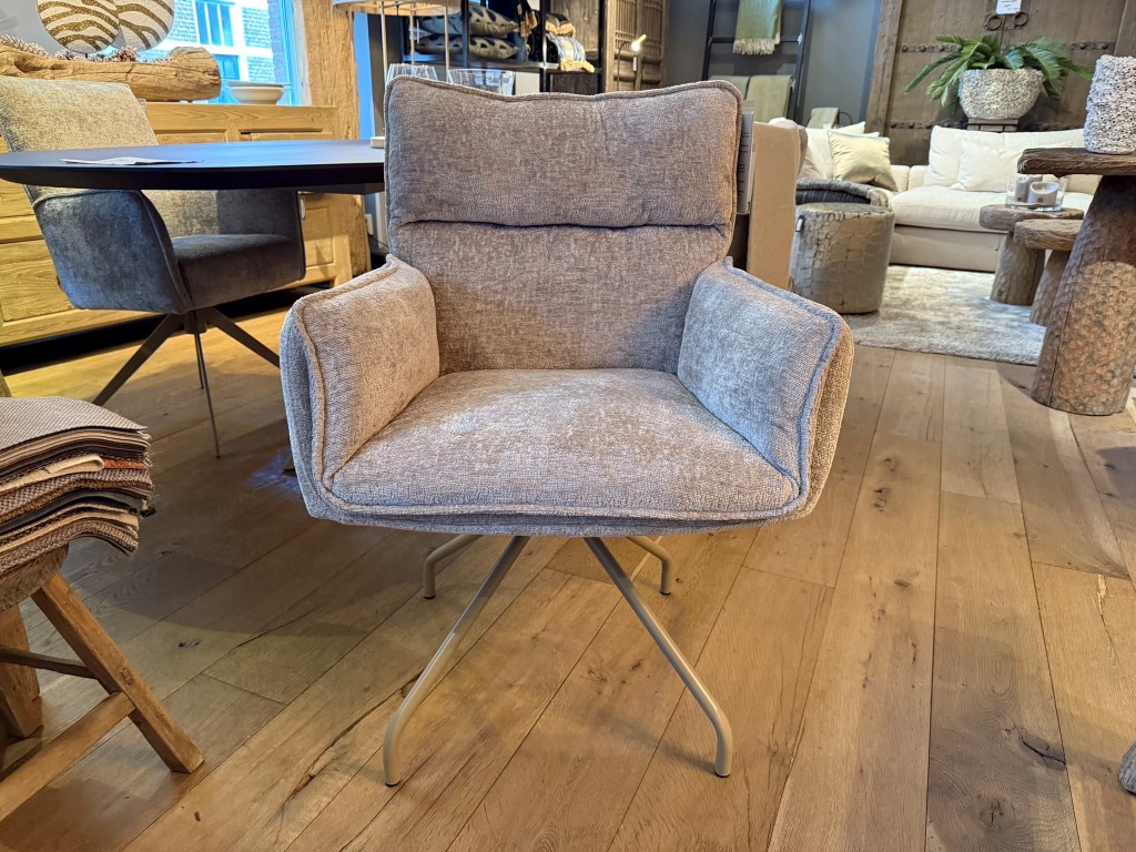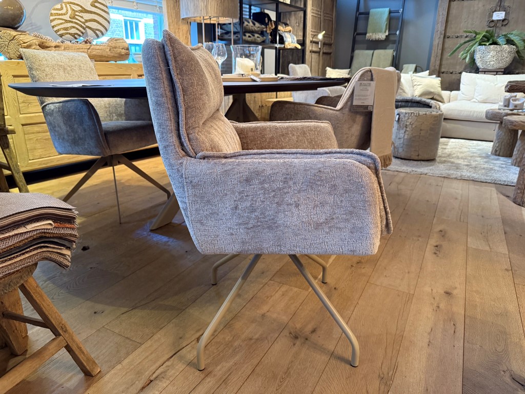 Eetkamerstoel Woodbury, met armleuning en draaipoot (A), uitgevoerd in stof: Trenza Taupe (SG2).