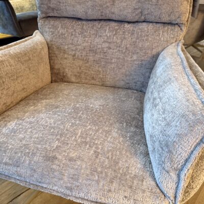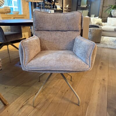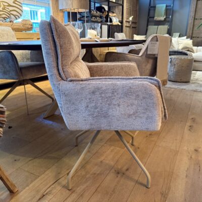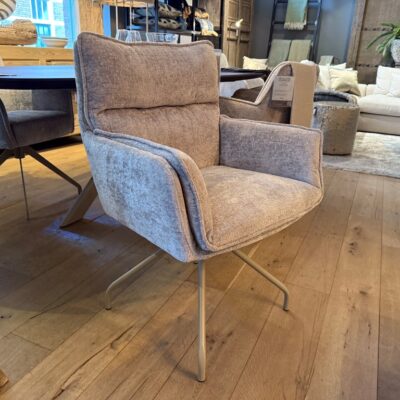 Eetkamerstoel Woodbury, met armleuning en draaipoot (A), uitgevoerd in stof: Trenza Taupe (SG2).