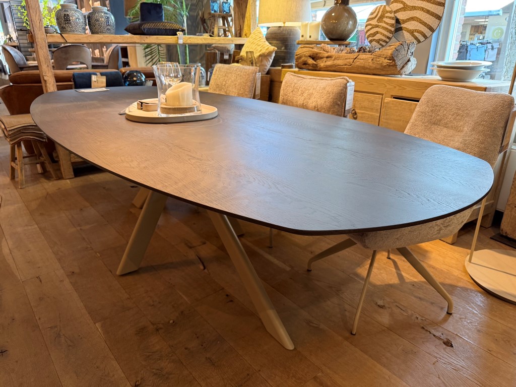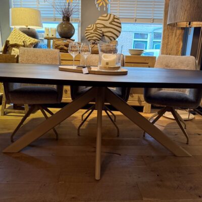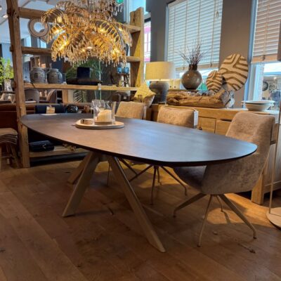 De tafel Modena is gemaakt van eikenhout, in de kleur Deer Brown en in de vorm: Deens Ovaal.