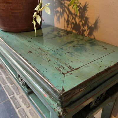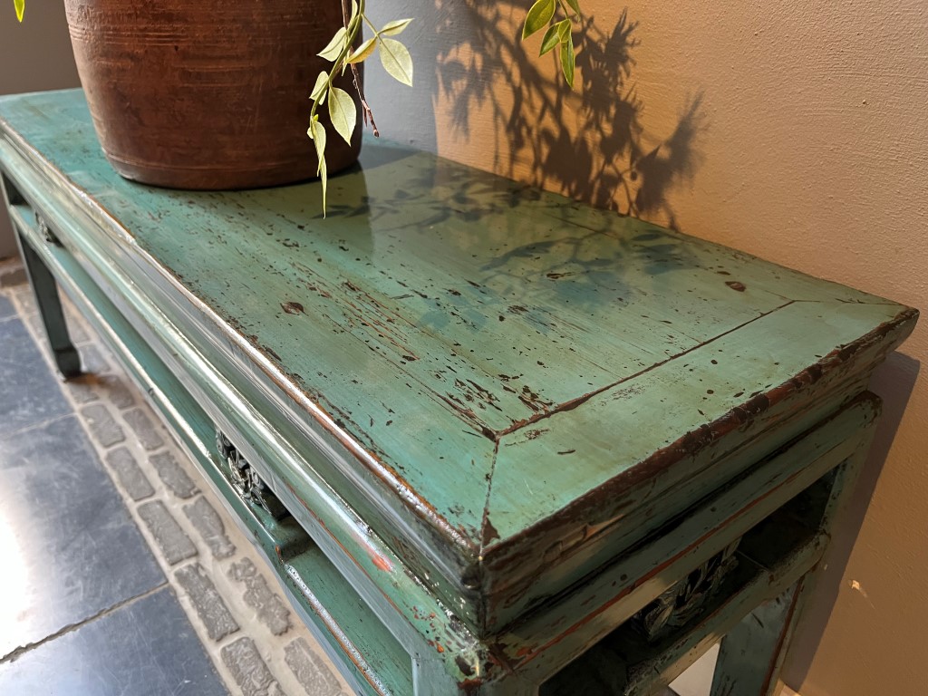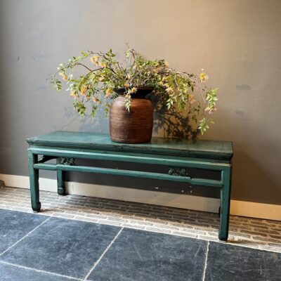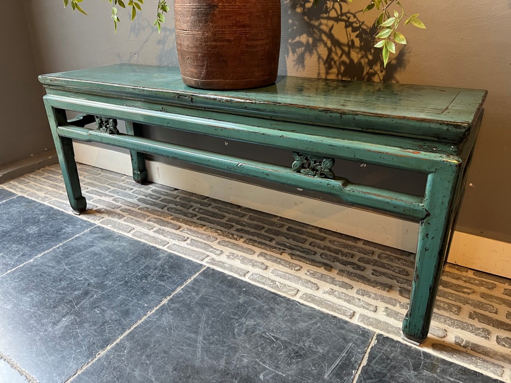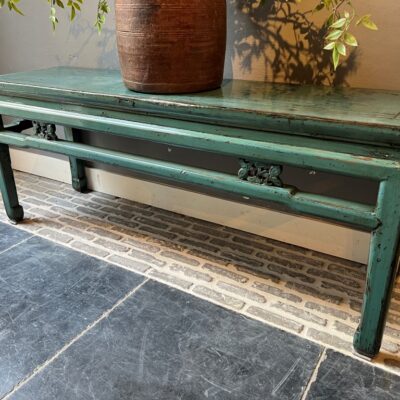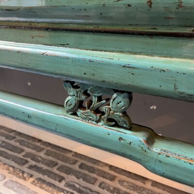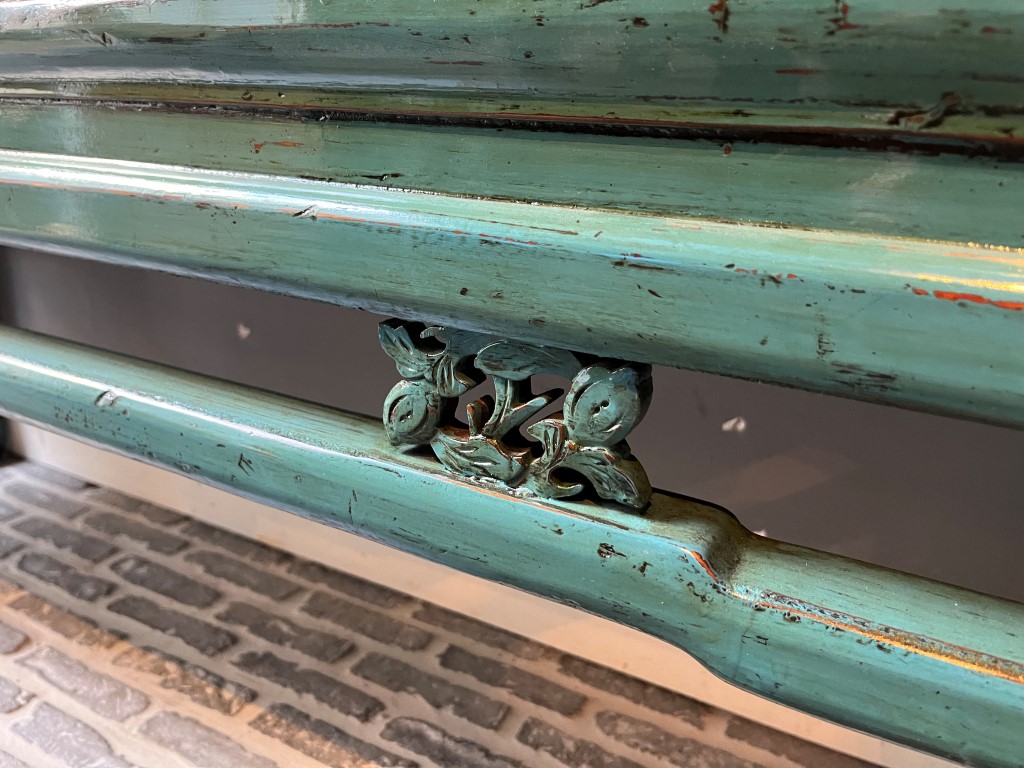 Antiek Chinees bankje, opnieuw bewerkt met blauwe lak.