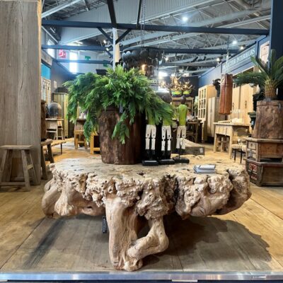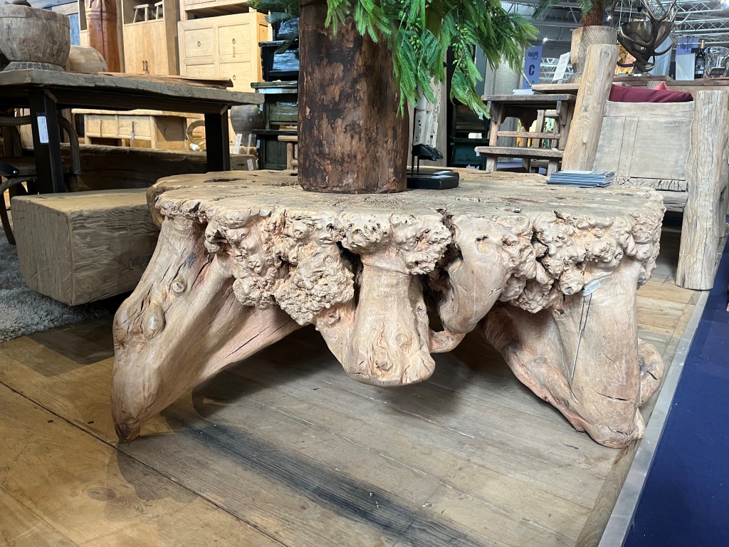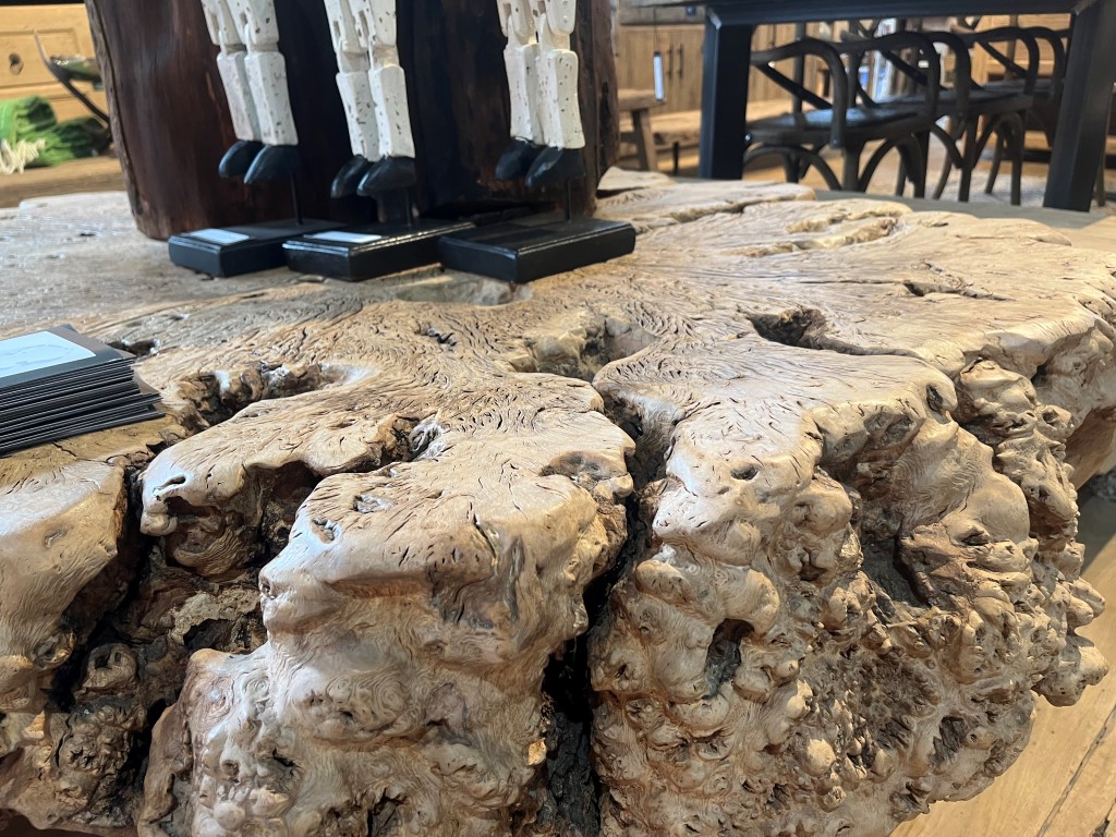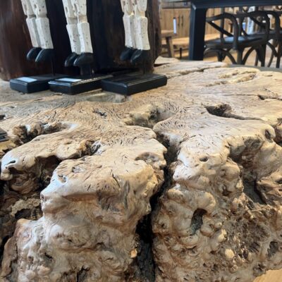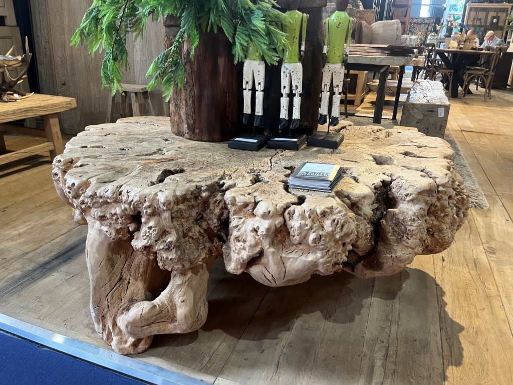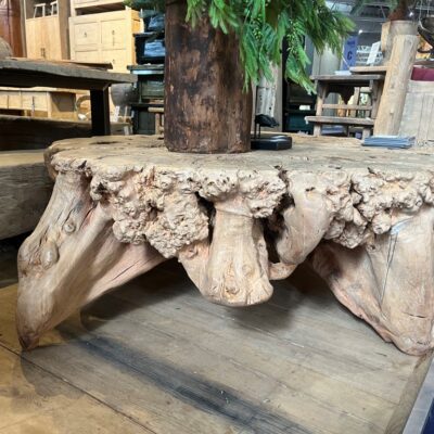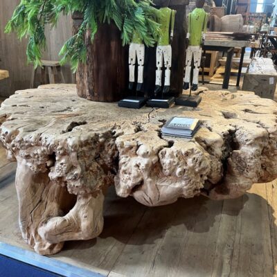 Boomstamtafel, gemaakt van een elmwood boomwortel.