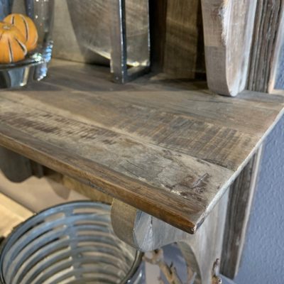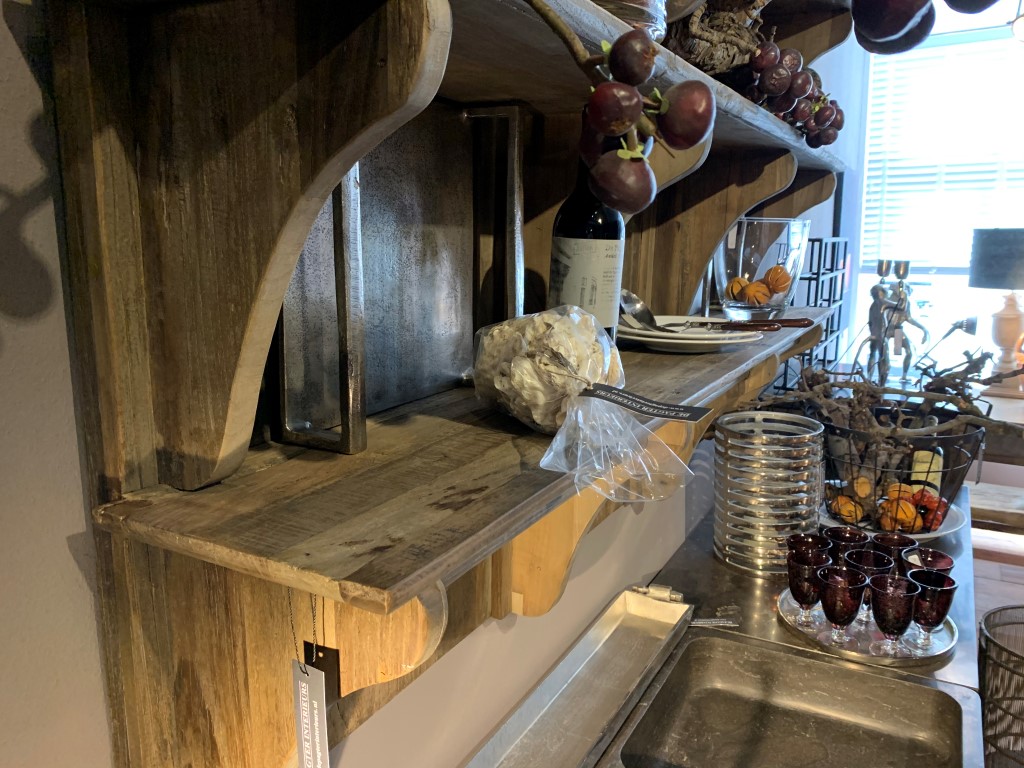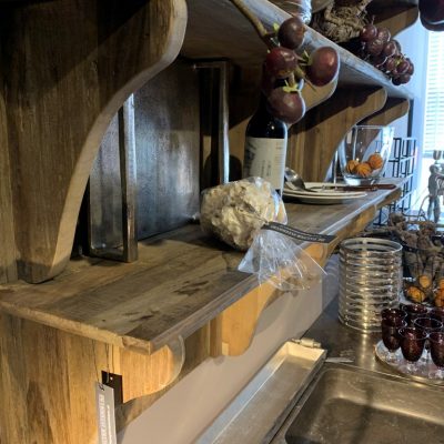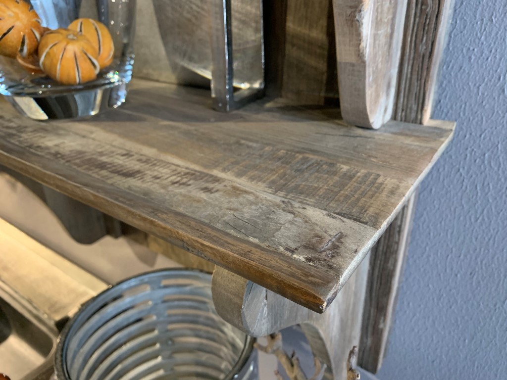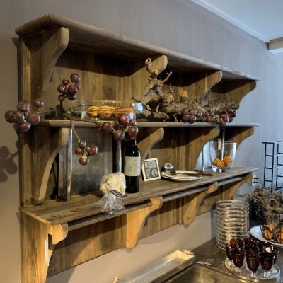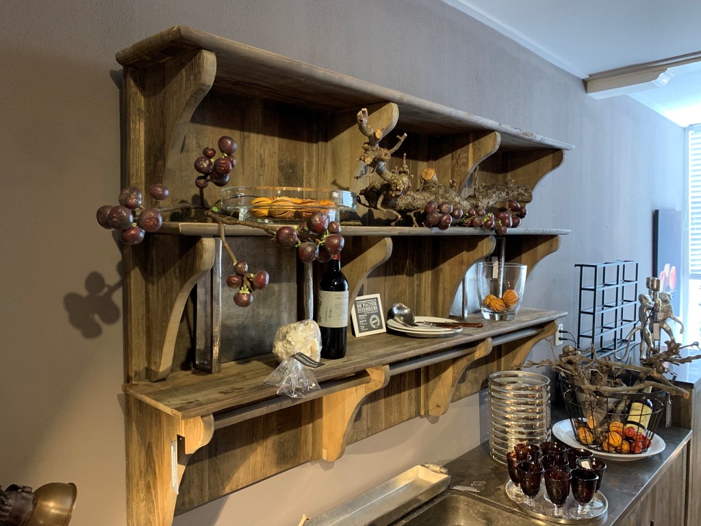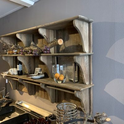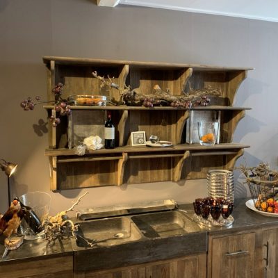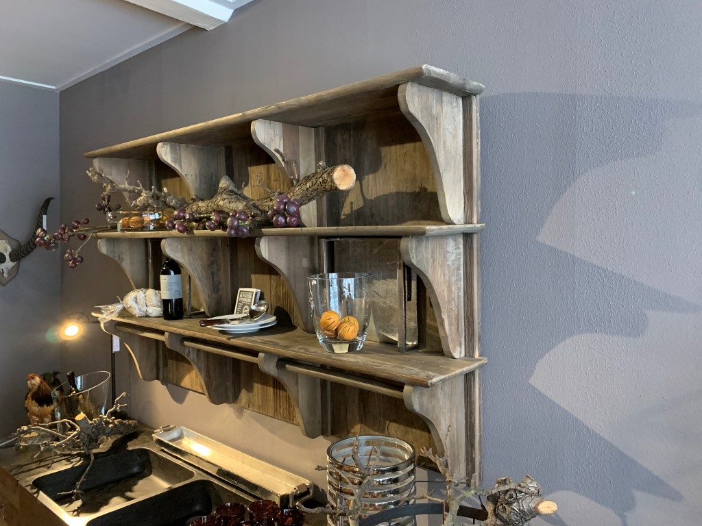 Landelijk keukenrek, gemaakt van elmwood. Dit keukenrek past perfect bij onze landelijke elmwood keuken.