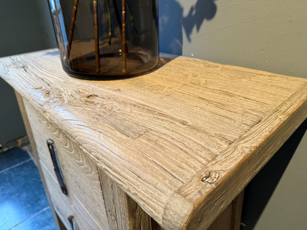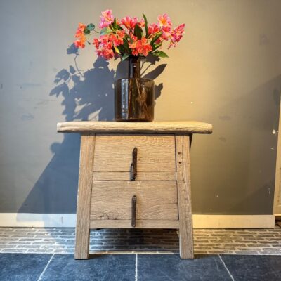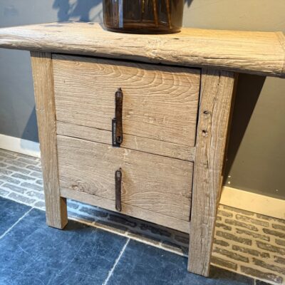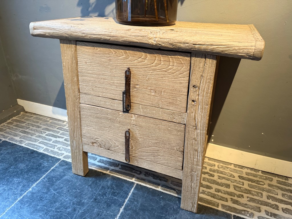 Landelijk kastje ‘Velas’ met 2 lades, gemaakt van elmwood.