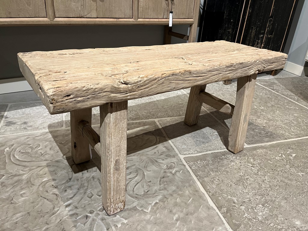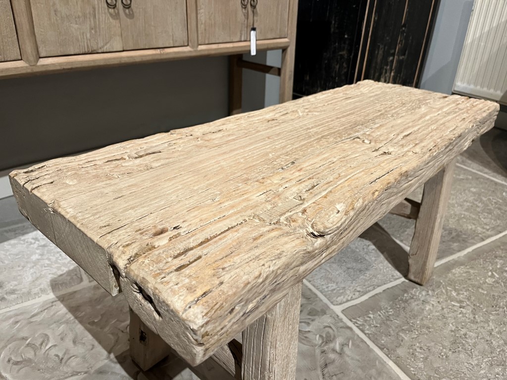 Grof bankje, gemaakt van old pine hout.
