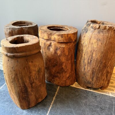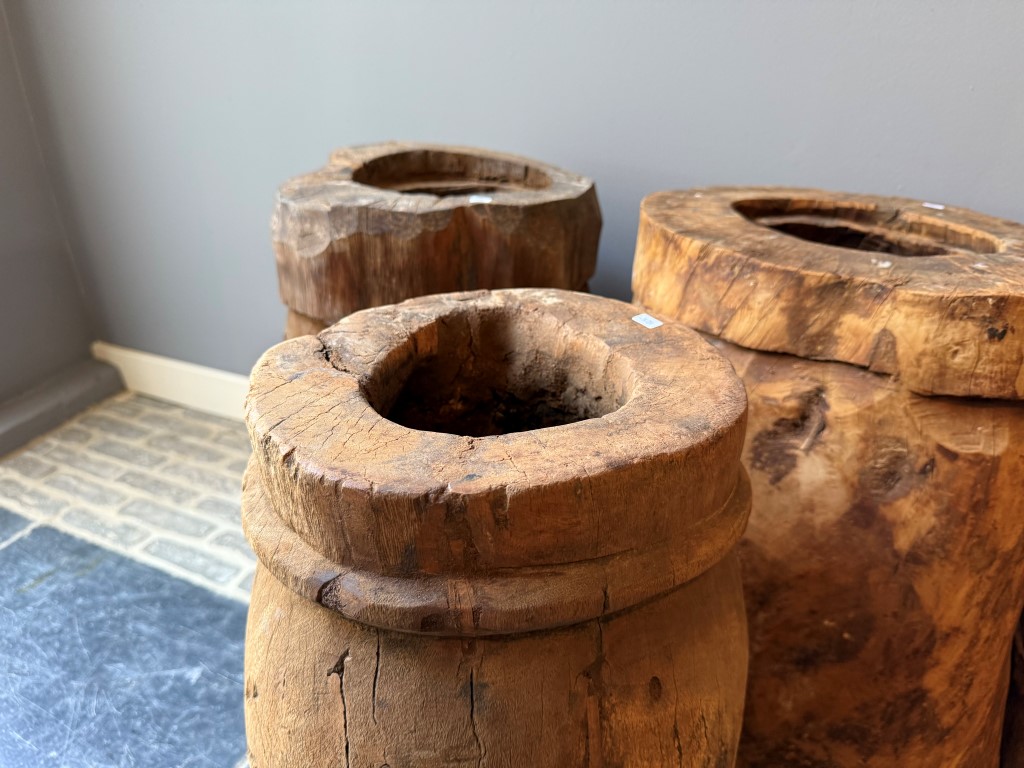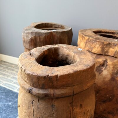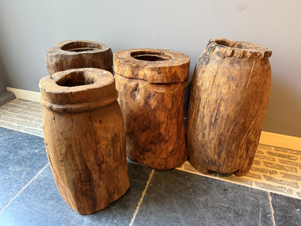 Verschillende hardhouten vazen. Elke vaas is uniek.