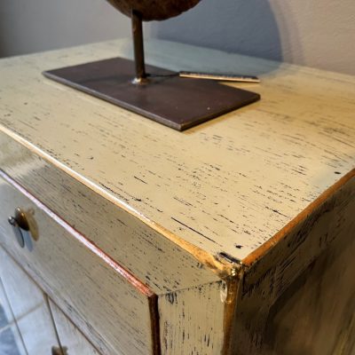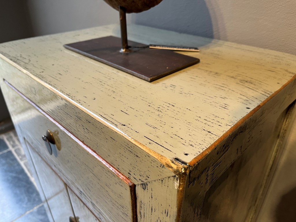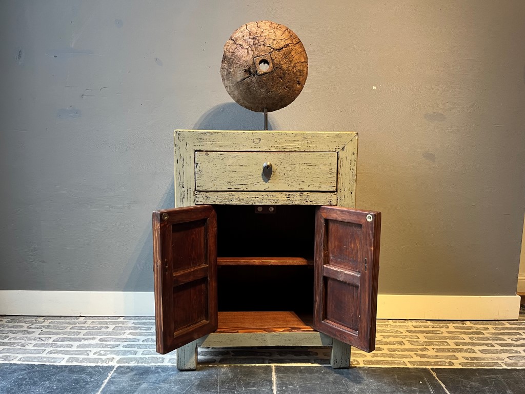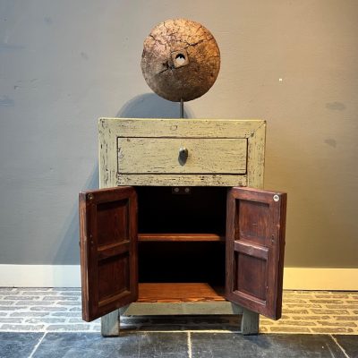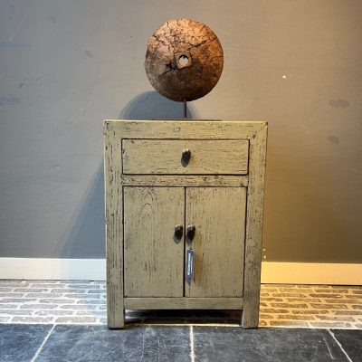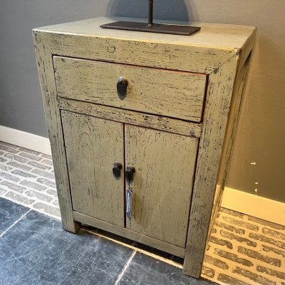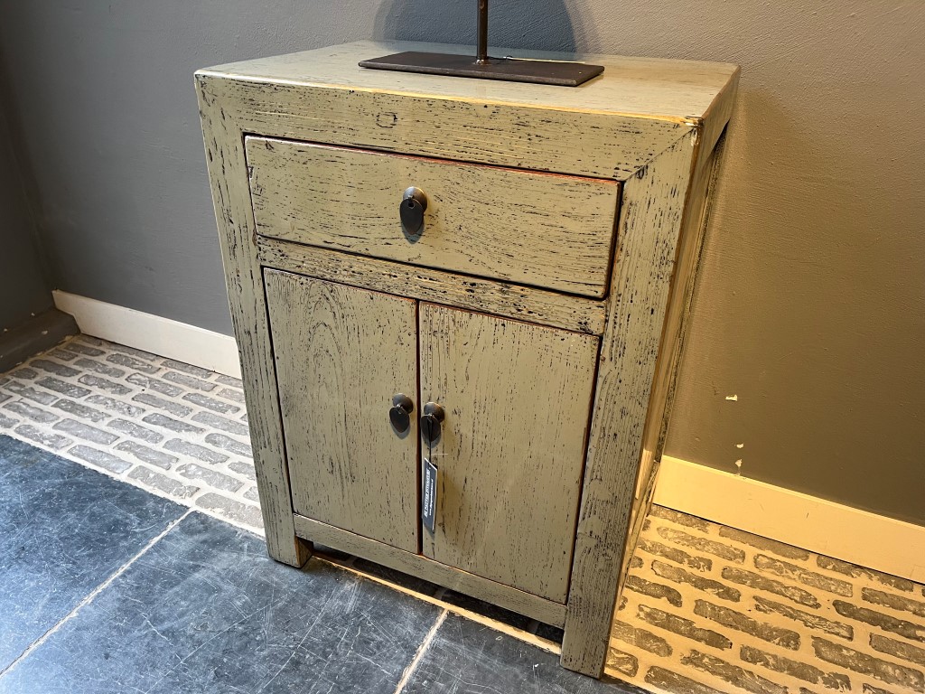 Nachtkastje ‘Almeria’ in het licht grijs gelakt. Ook in andere kleuren verkrijgbaar.