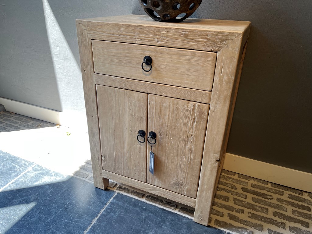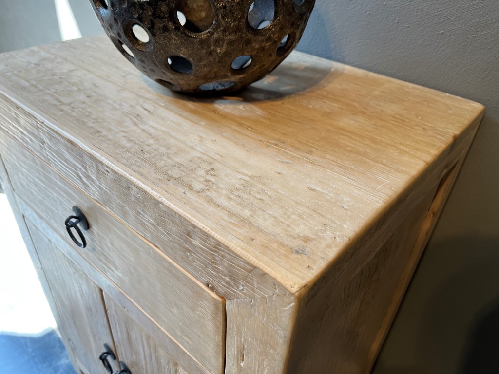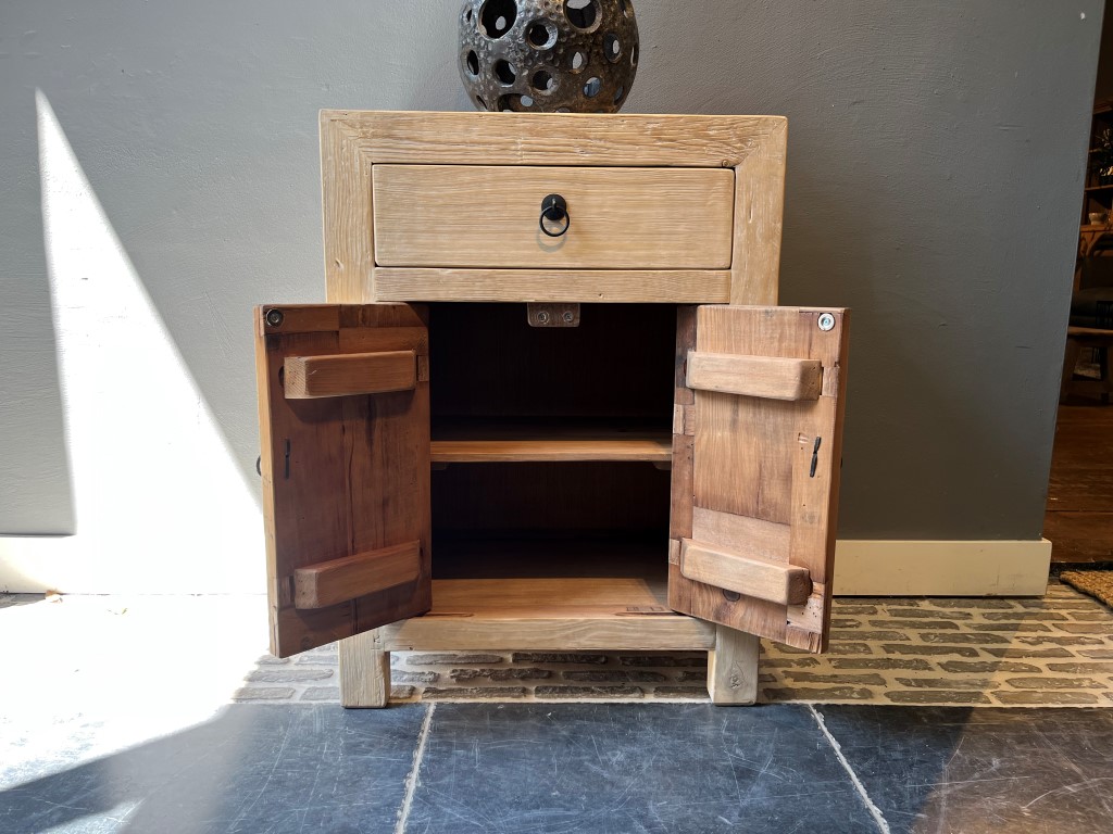 Landelijk nachtkastje ‘Almeria’ met 2 deurtjes en 2 lades, gemaakt van old pine hout.