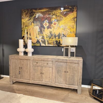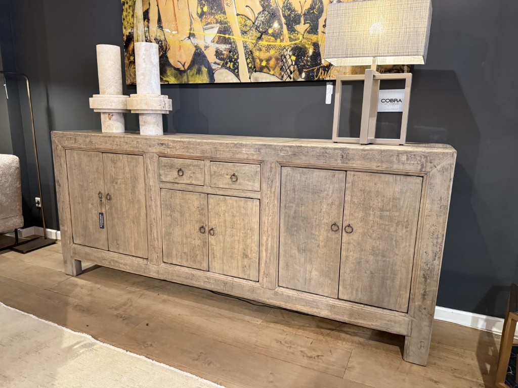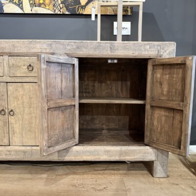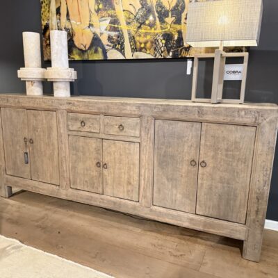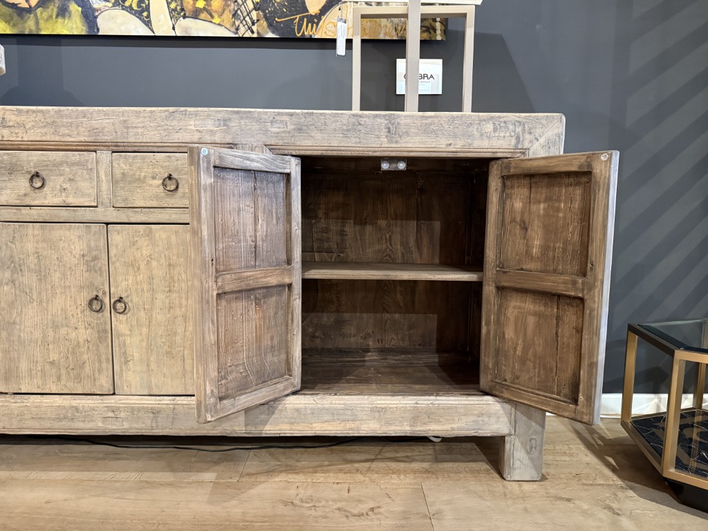 Landelijke dressoir met 6 deuren en 2 lades, gemaakt van old pine hout.