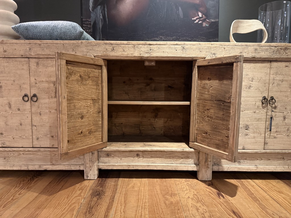 Landelijk dressoir met 6 deuren, gemaakt van old pine hout.