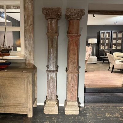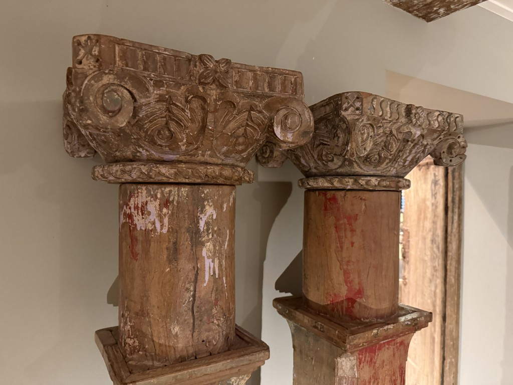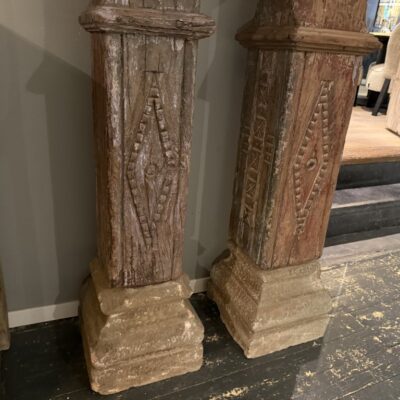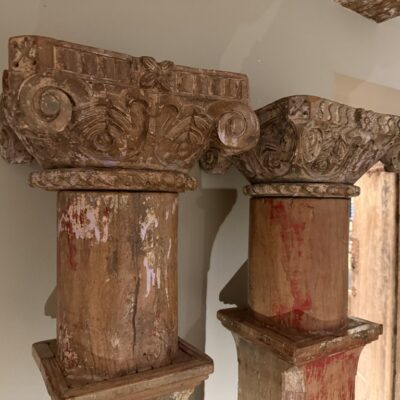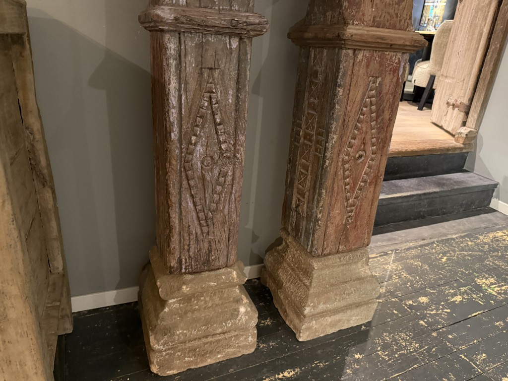 Set van twee antieke zuilen, gemaakt van hardhout.
