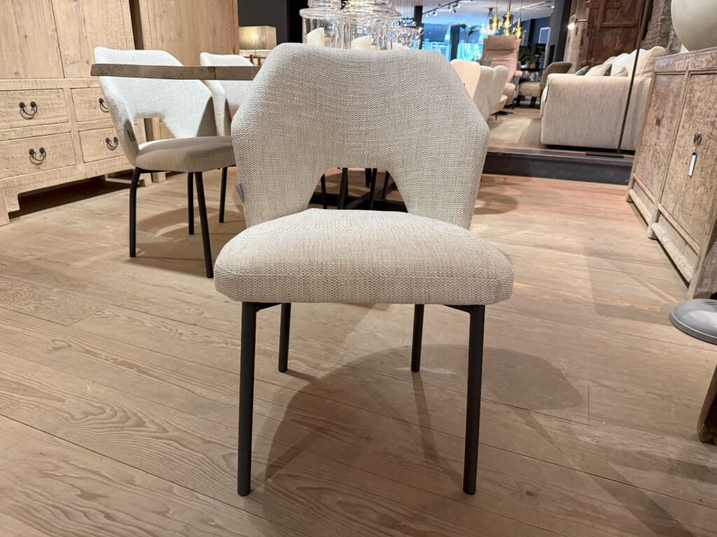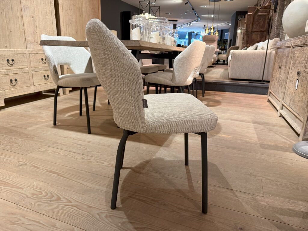 Eetkamerstoel Luna, zonder armleuning, uitgevoerd in stof: Polaris Natural.