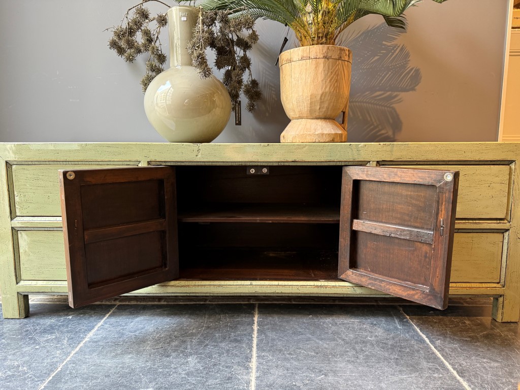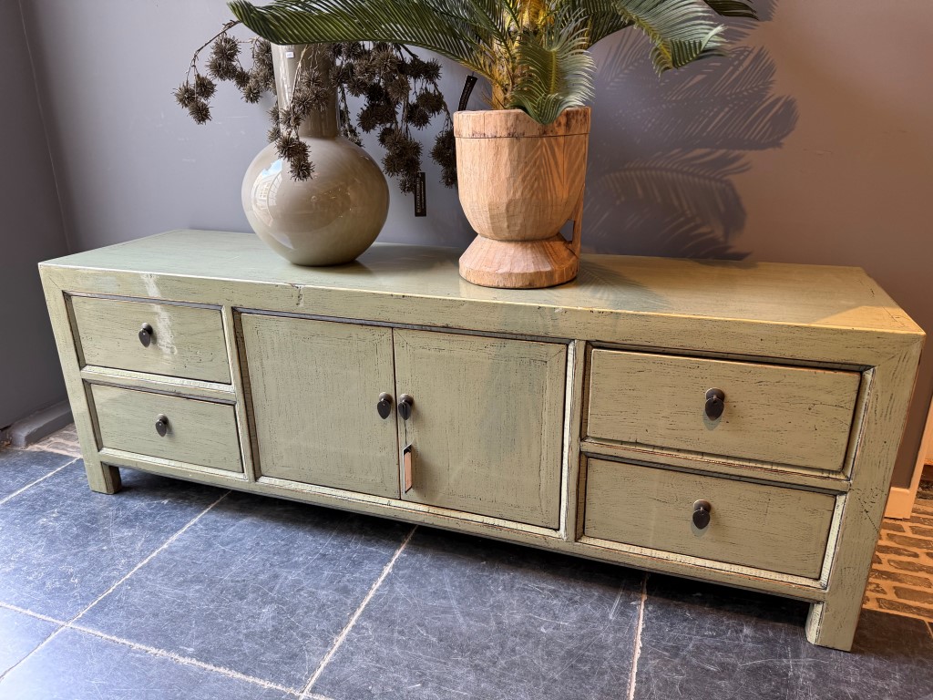 TV-dressoir ‘Siena Small’ in het licht grijs gelakt. Ook in andere kleuren verkrijgbaar.