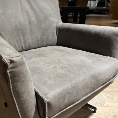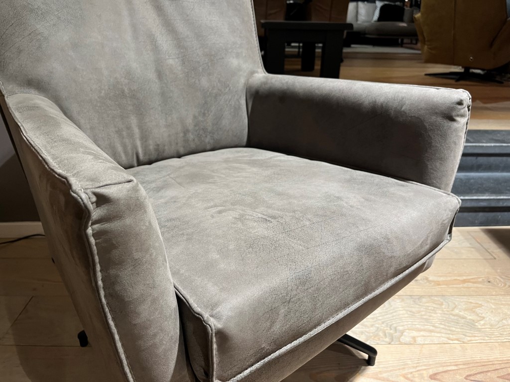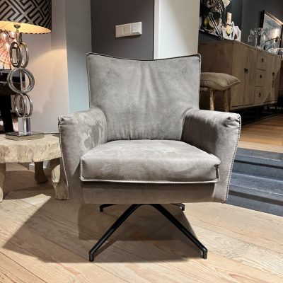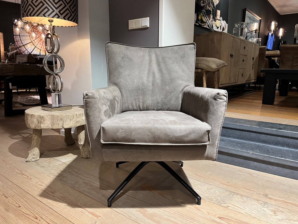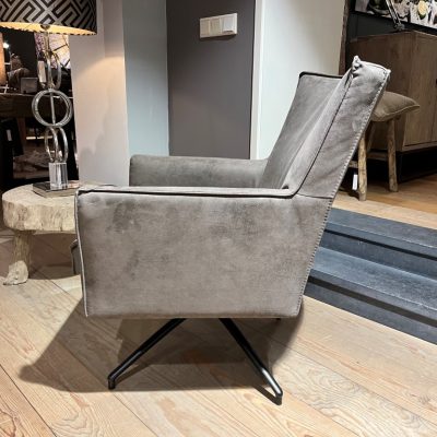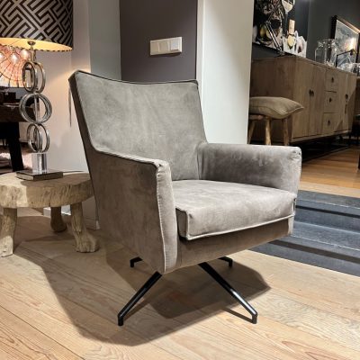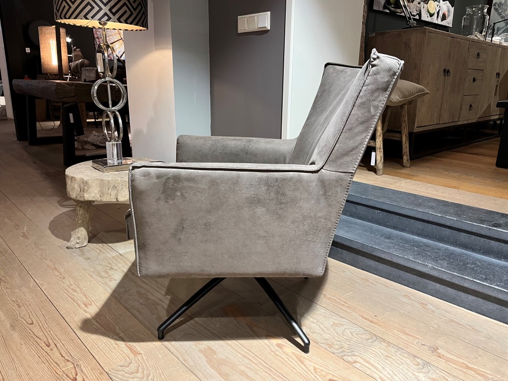 Fauteuil Achill met een metalen kruispoot, uitgevoerd in leer: Colorado – Stone.
