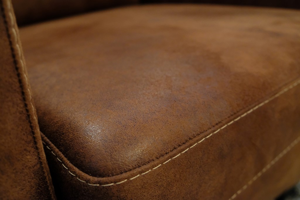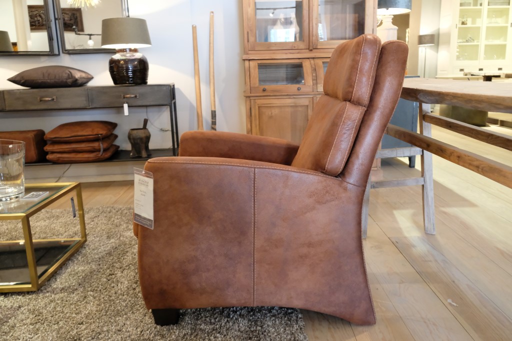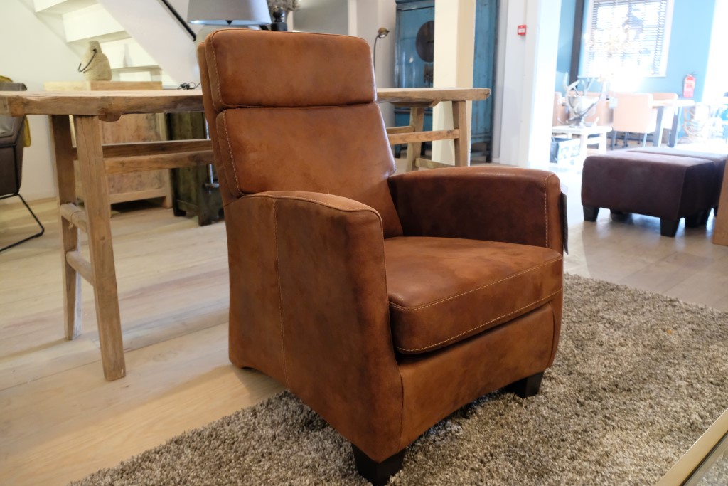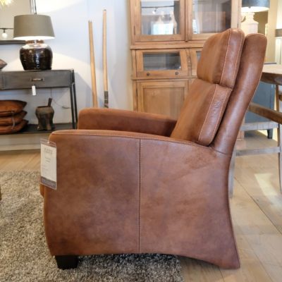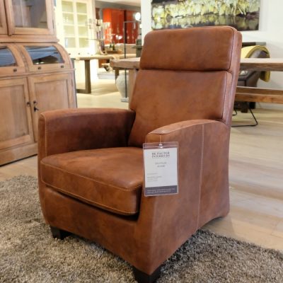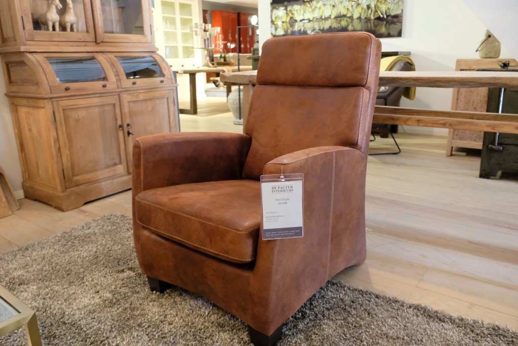 Fauteuil Adam, met armleuning. Uitgevoerd in Tasan – Licht bruin.