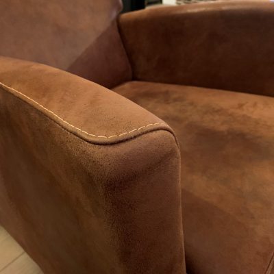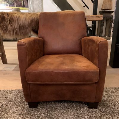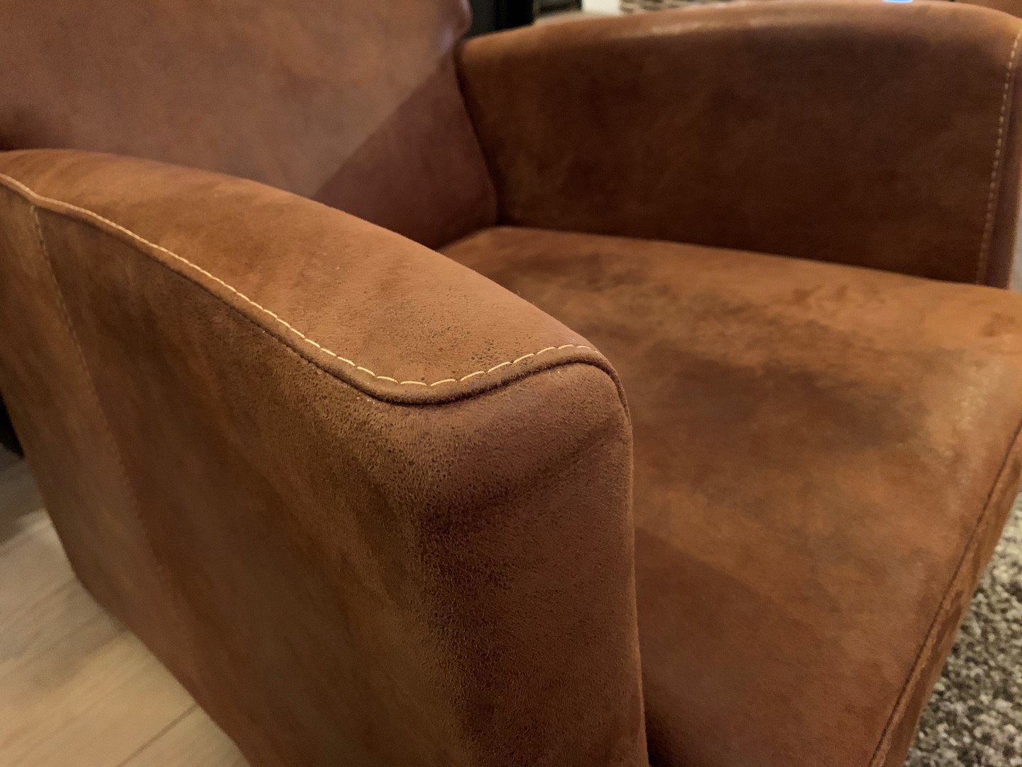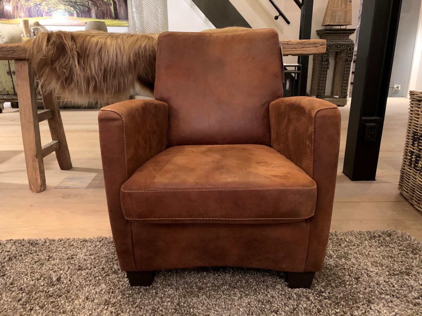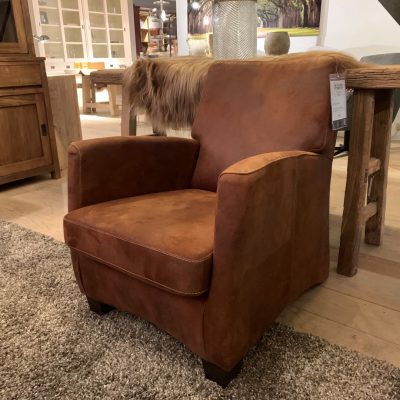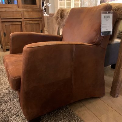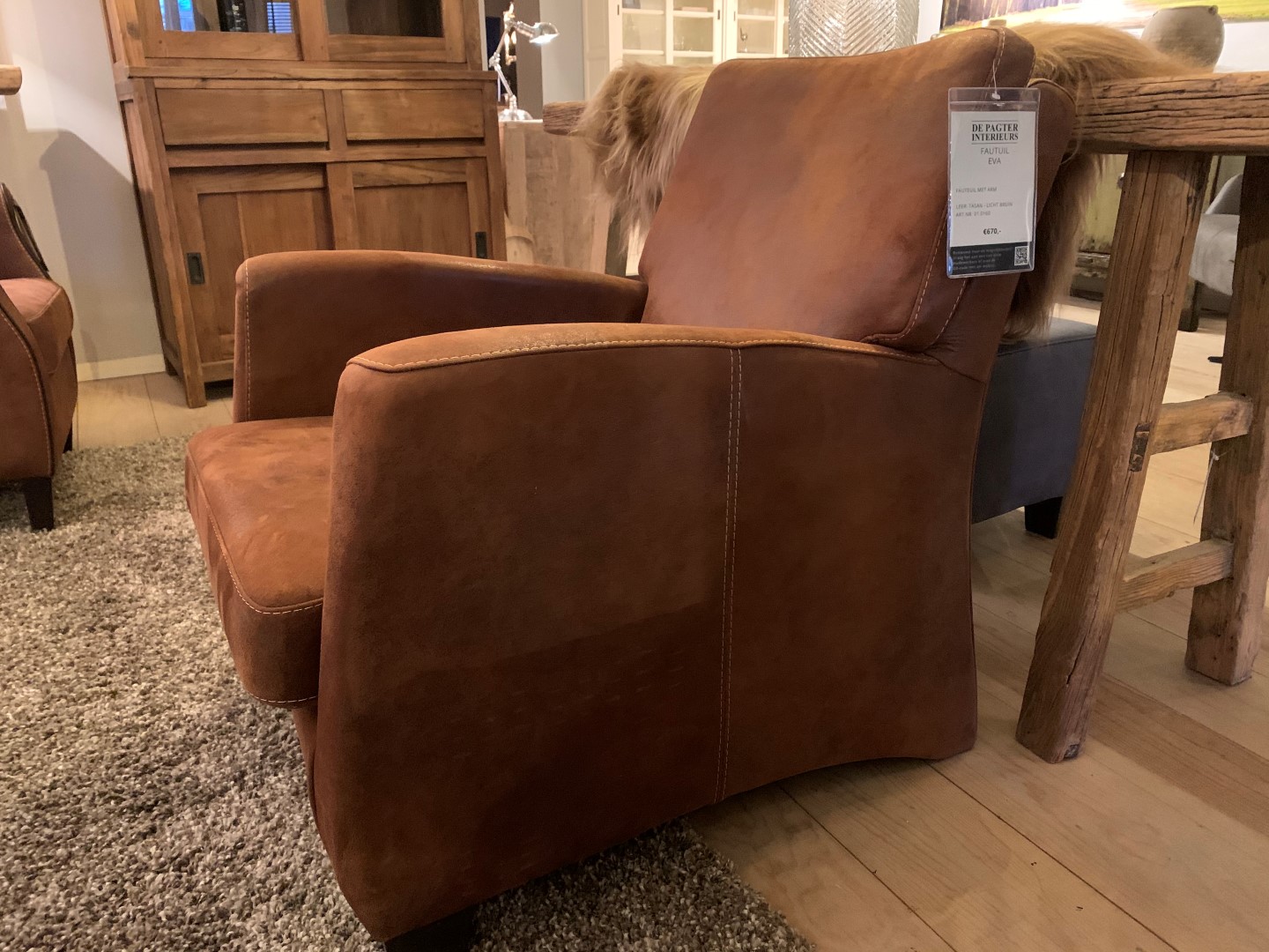 Fauteuil Eva, met armleuning. Uitgevoerd in Tasan – Licht bruin.