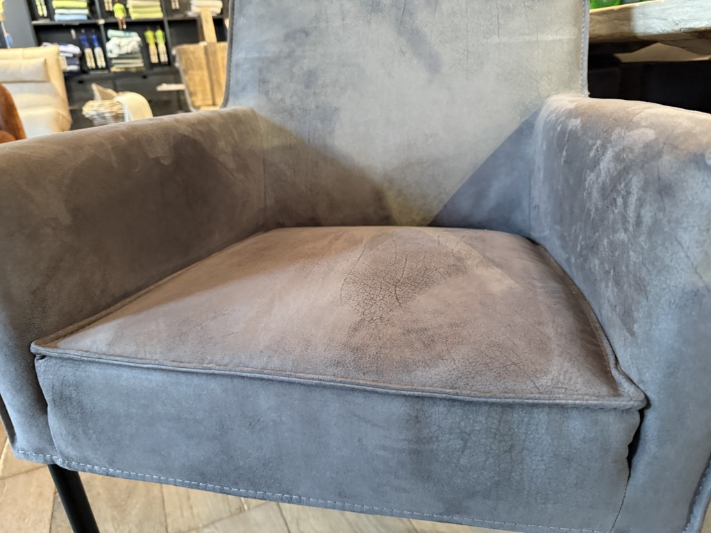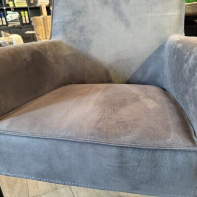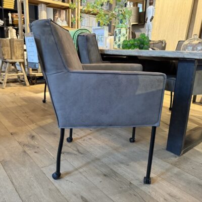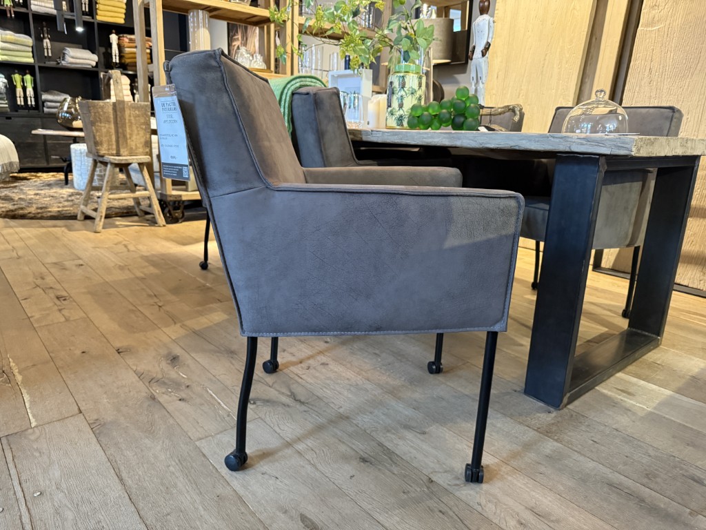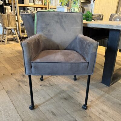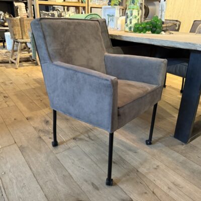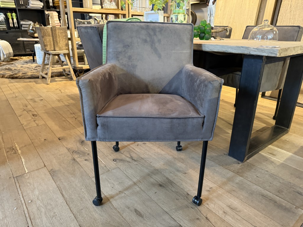 Eetkamerstoel Apeldoorn, met armleuning en wielen, uitgevoerd in leer: Colorado – Stone (1).