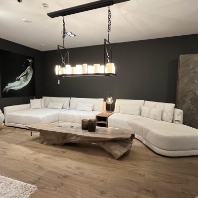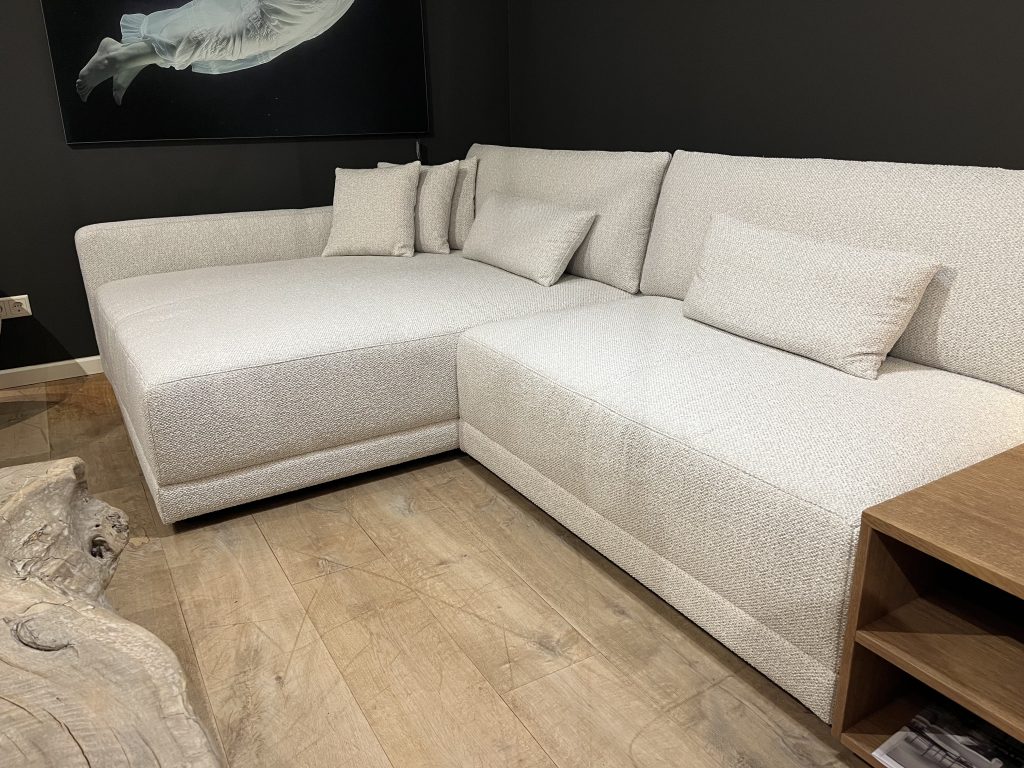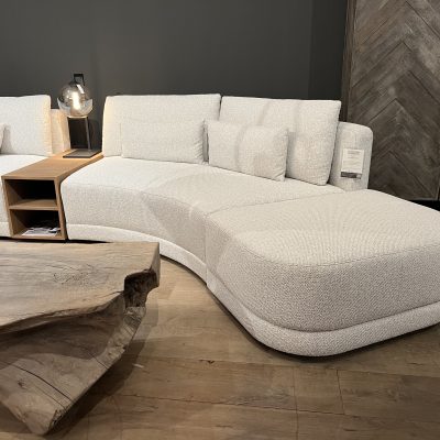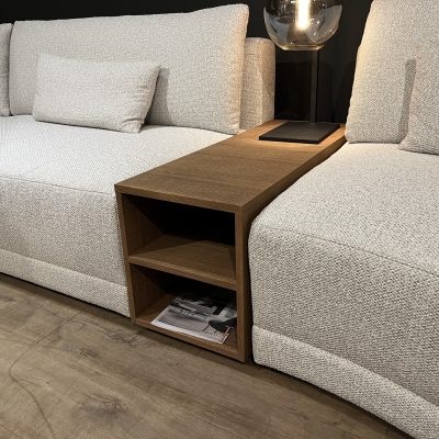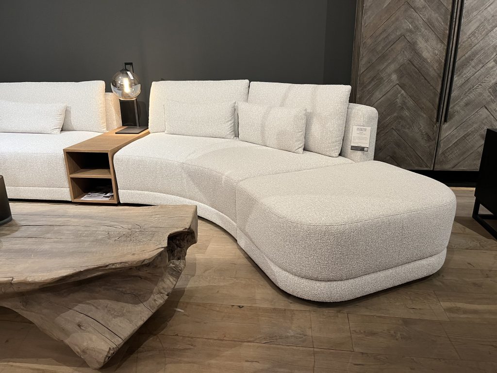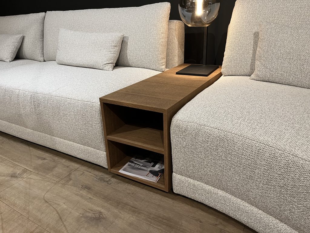 Getoond model: Bob met arm links, 2-zits zonder arm, inner tafel (Tobacco Oak), Banana 2-zits en Banana poef.