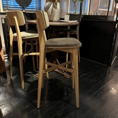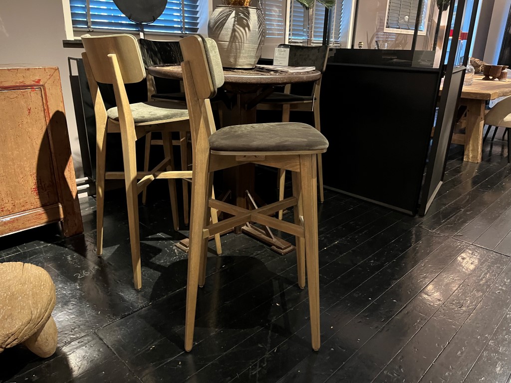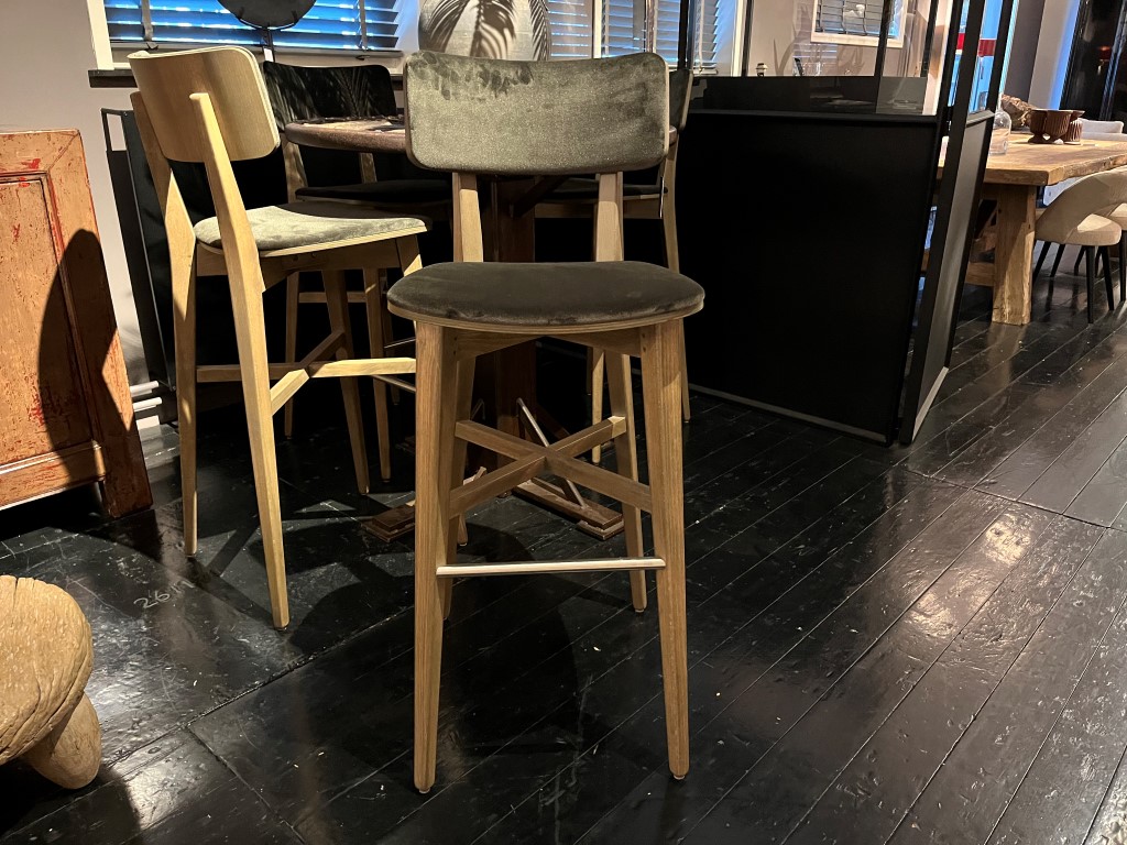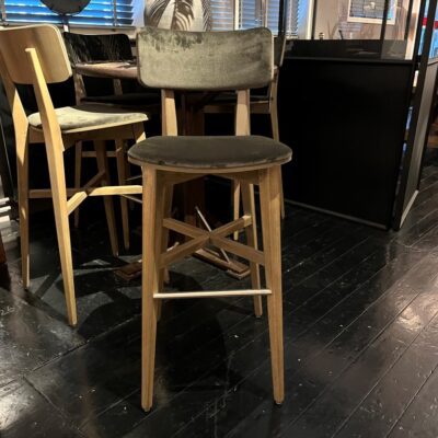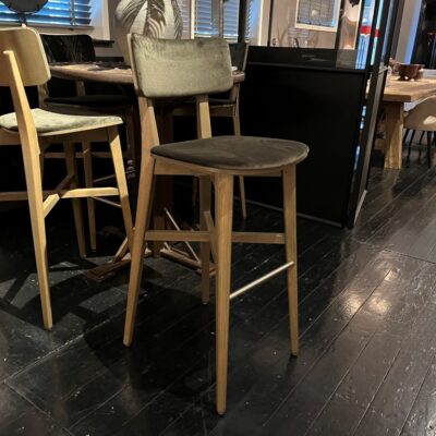 Barstoel Romaine, hoog, zonder armleuning, uitgevoerd met een houten frame en in stof: Boulevard Collection – Juke 156.