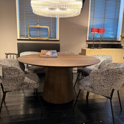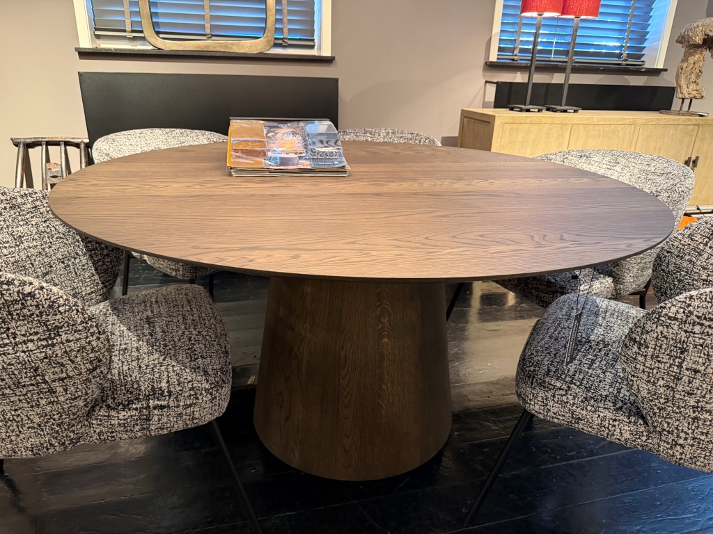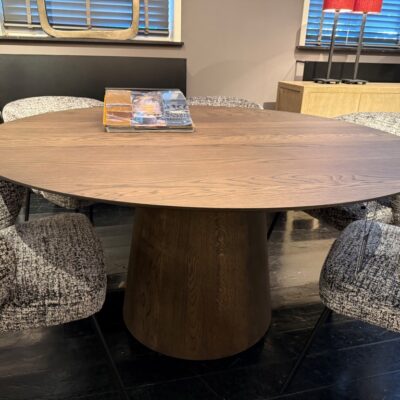 Tafel Young, met een conische voet, uitgevoerd in Eiken Deer Brown.