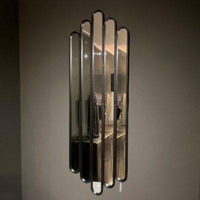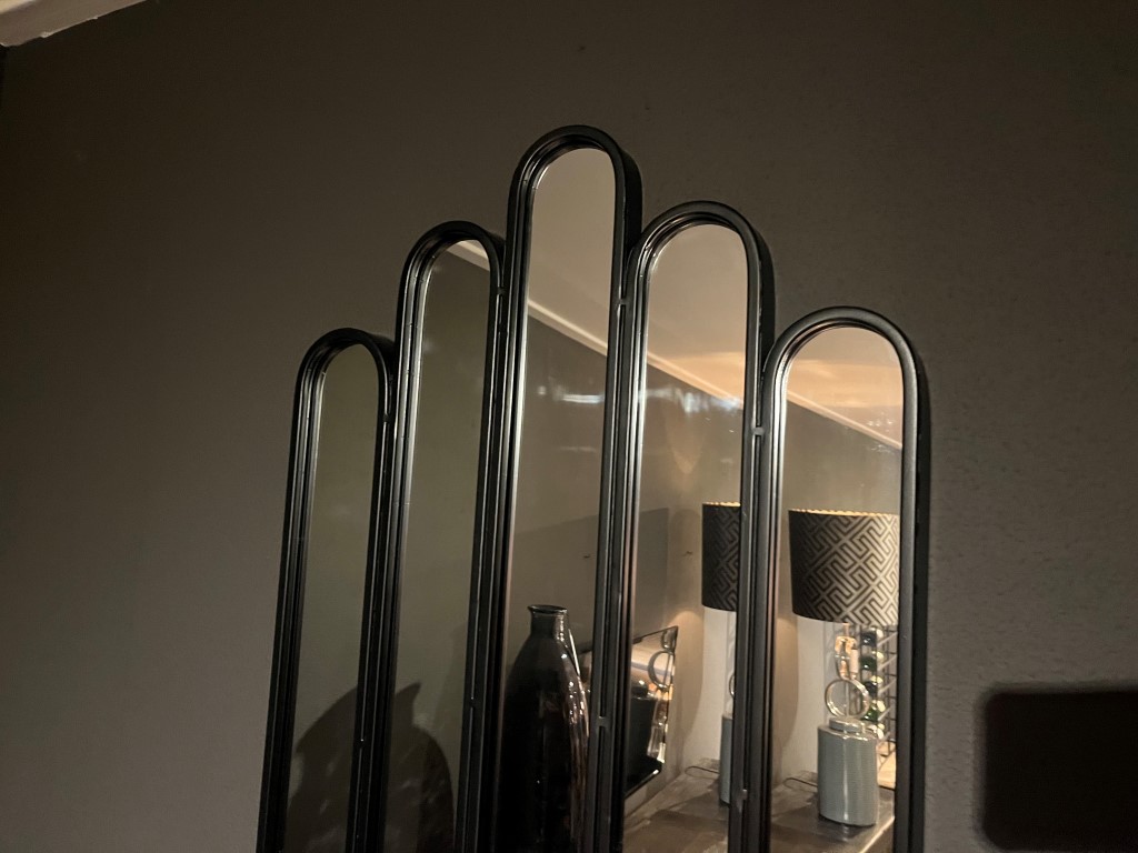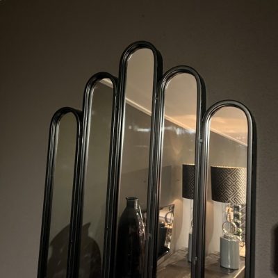 Spiegel ‘Brest’, gemaakt van zwartkleurig metaal.