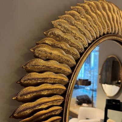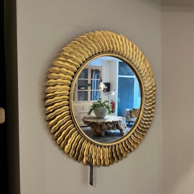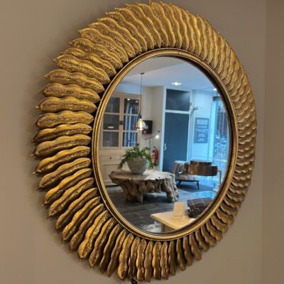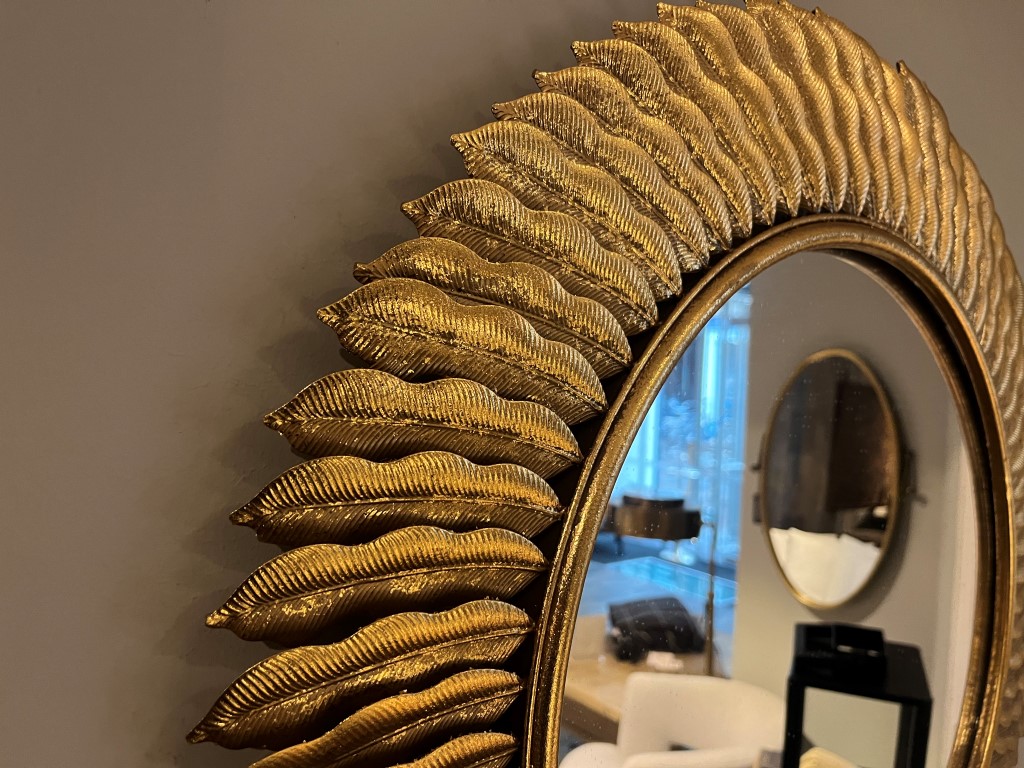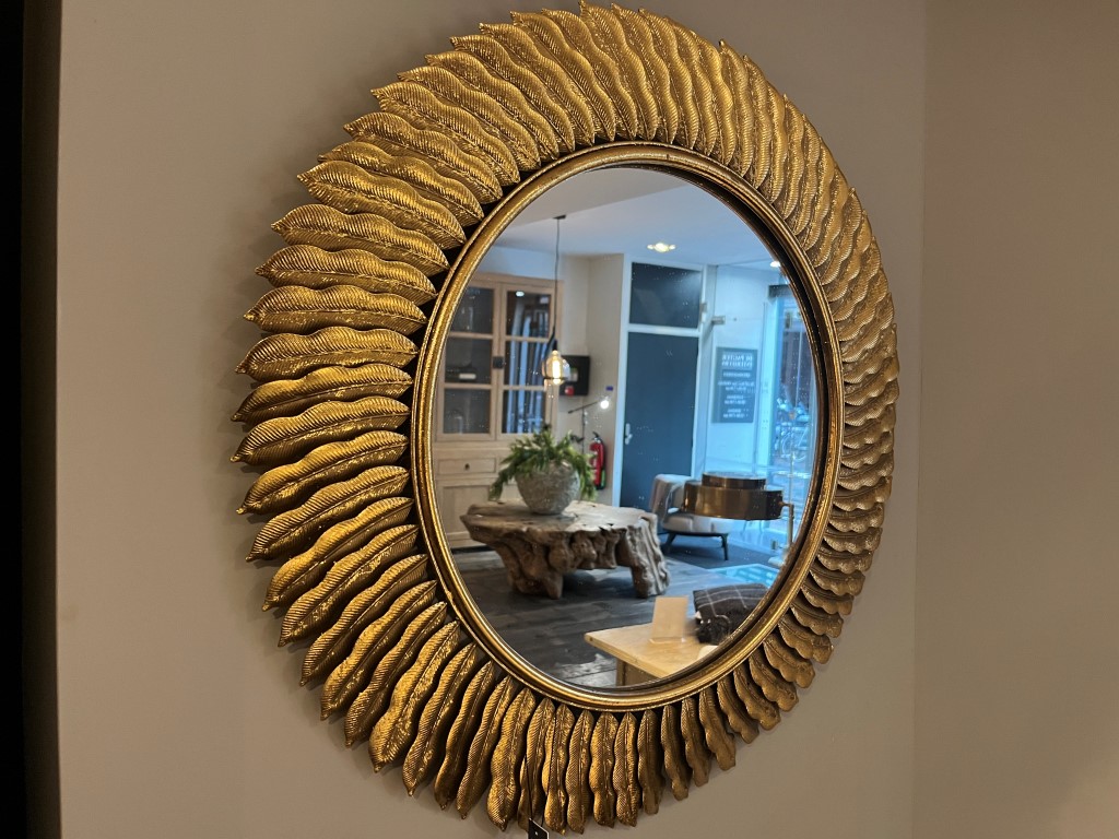 Ronde spiegel ‘Sunny’, gemaakt van metaal.