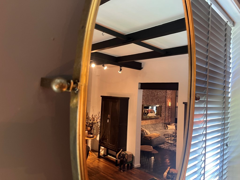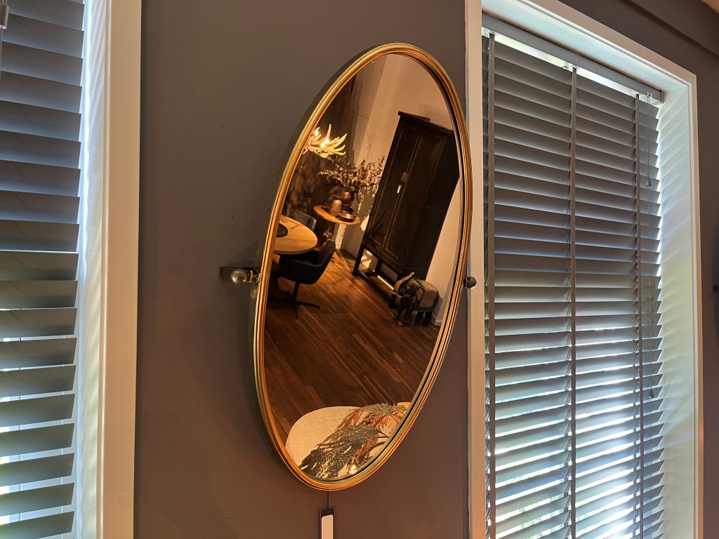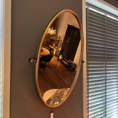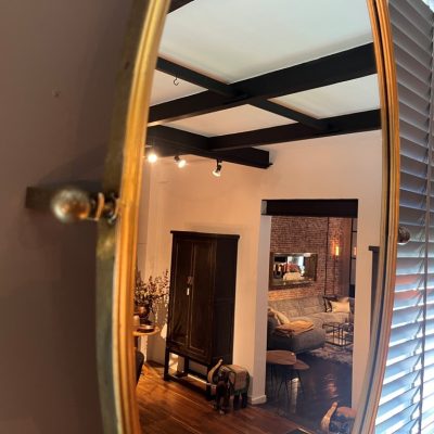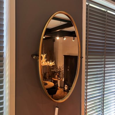 Verstelbare spiegel ‘Yunis’ met een frame van goudkleurig metaal.