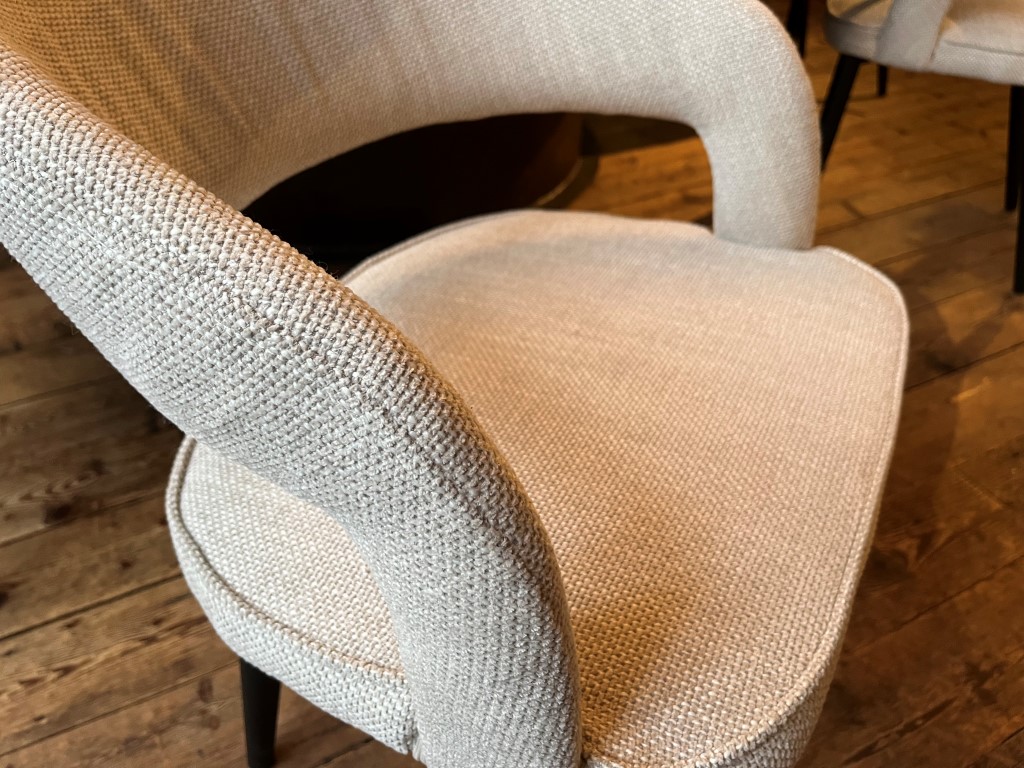 Stoel ‘Tusk’, uitgevoerd in stof ‘Ecru’.