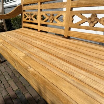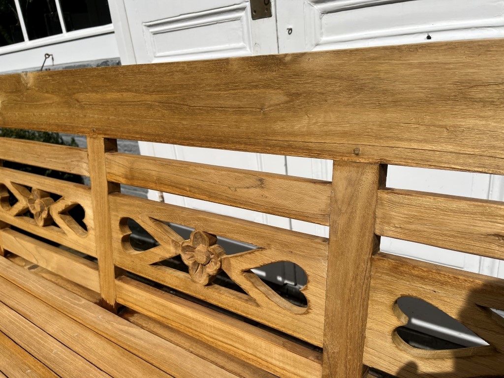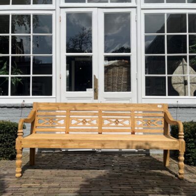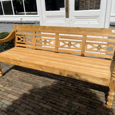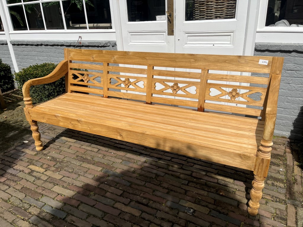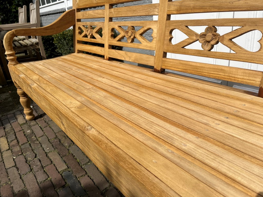 Teakhouten stationsbank voor in de tuin. Ook in andere afmetingen leverbaar.