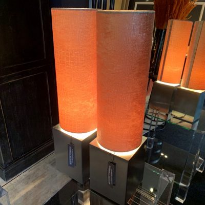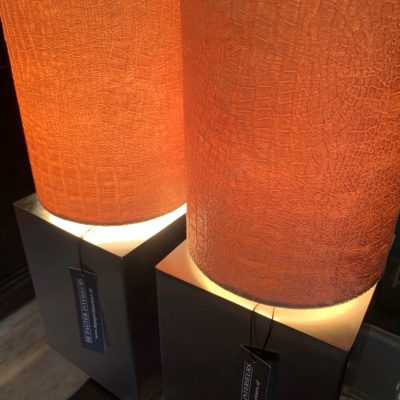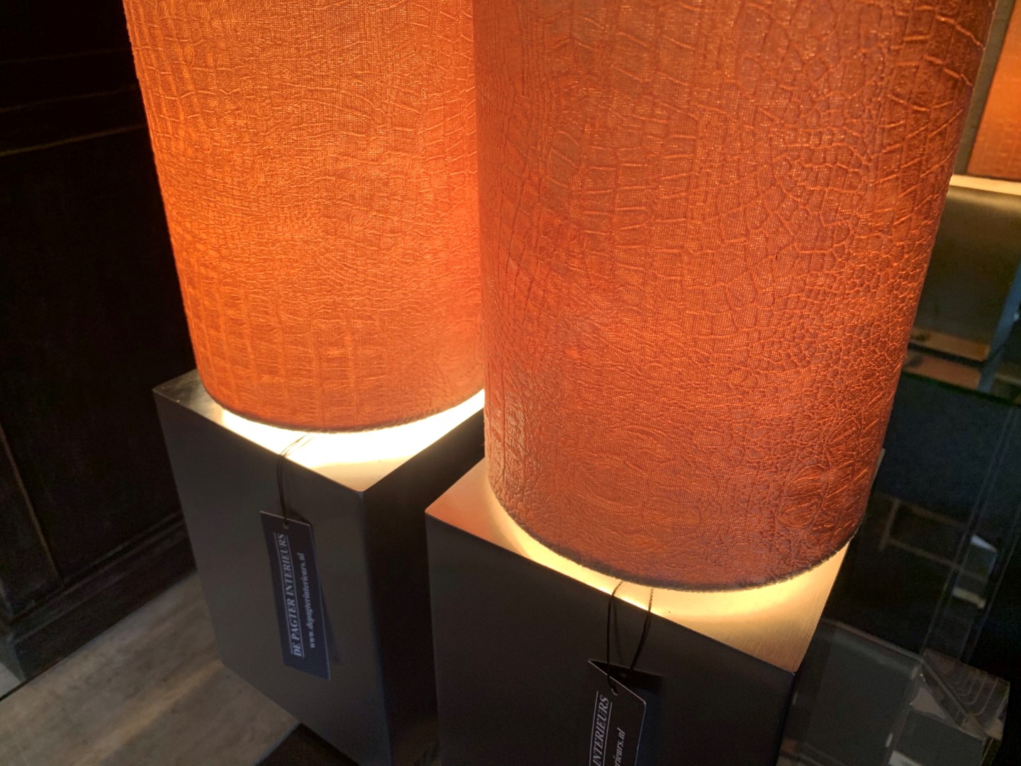 Staande lamp ‘Zagreb’ met een aluminium voet en een fluwelen kap van stof.