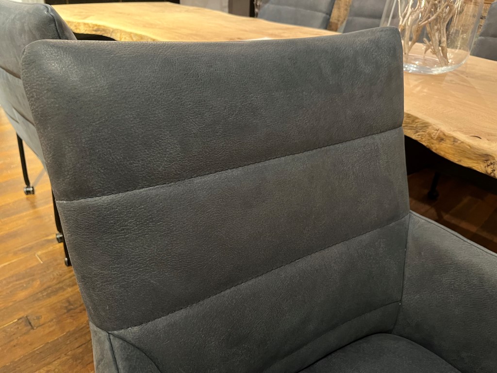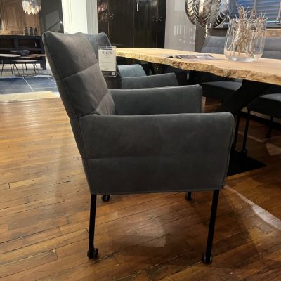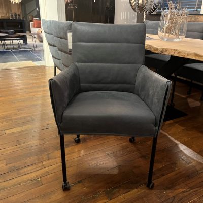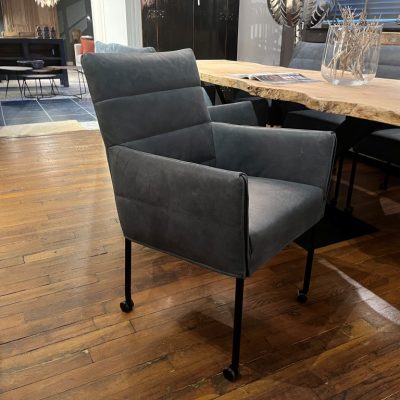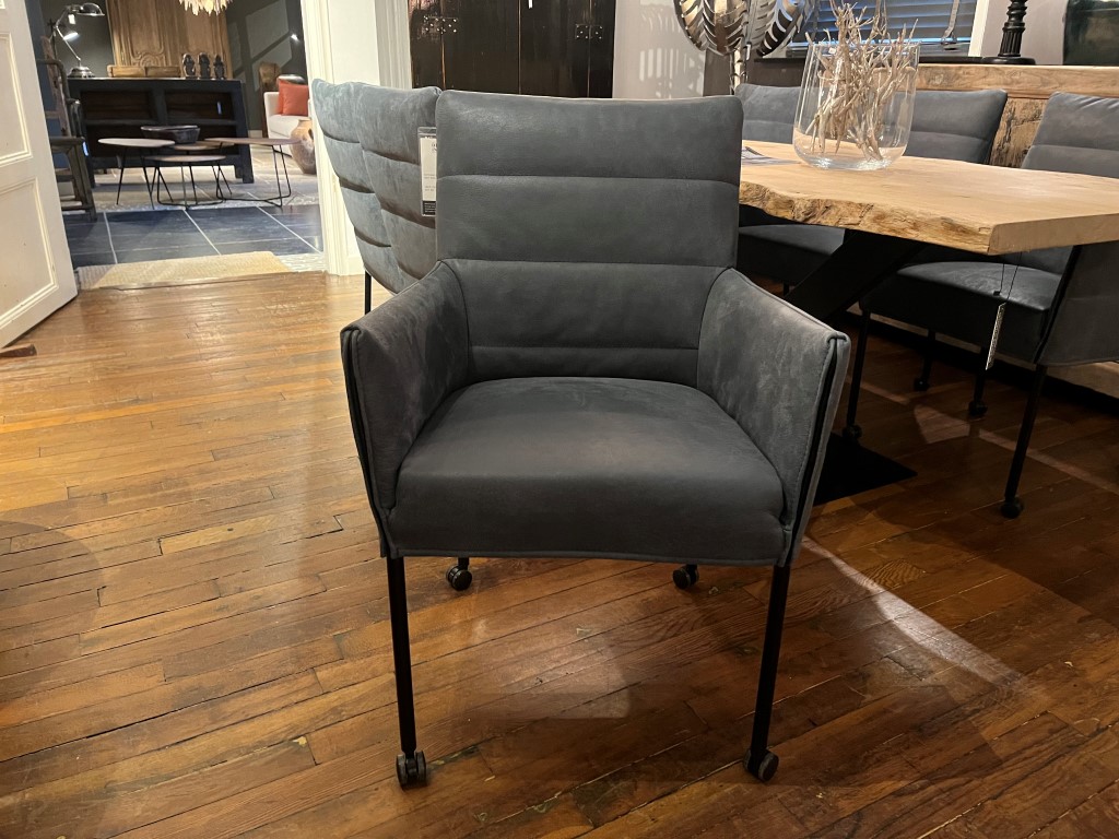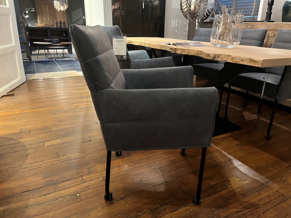 Monza Esszimmerstuhl mit Armlehne und Rollen, hergestellt aus Leder: Kenya – Denim.