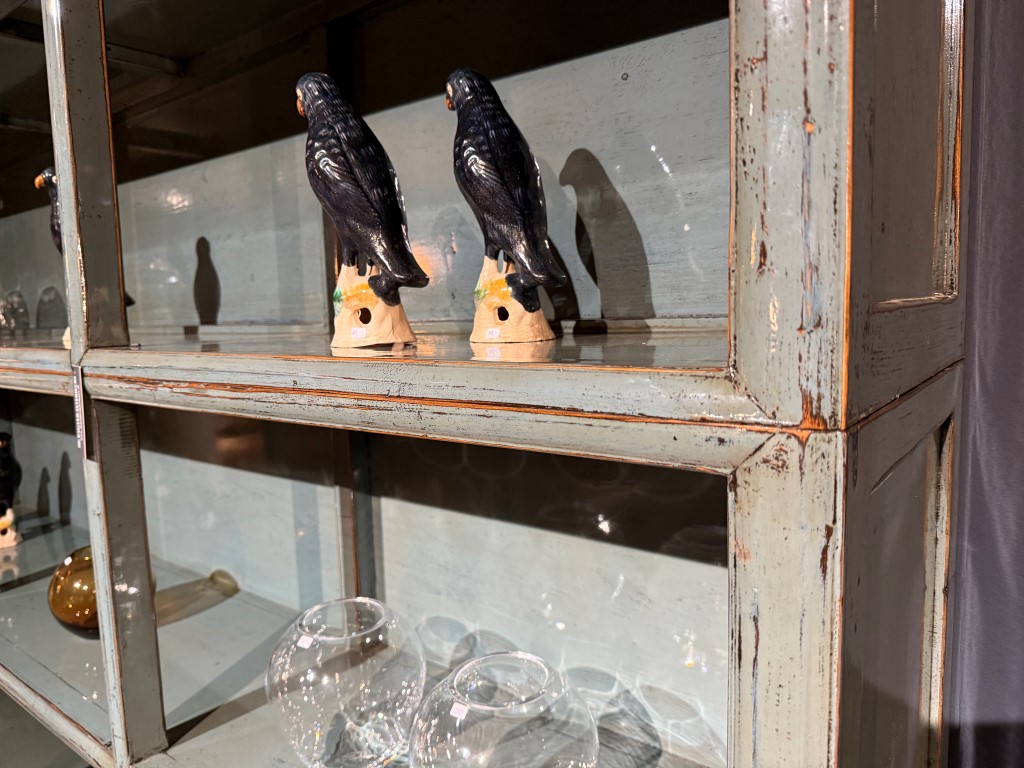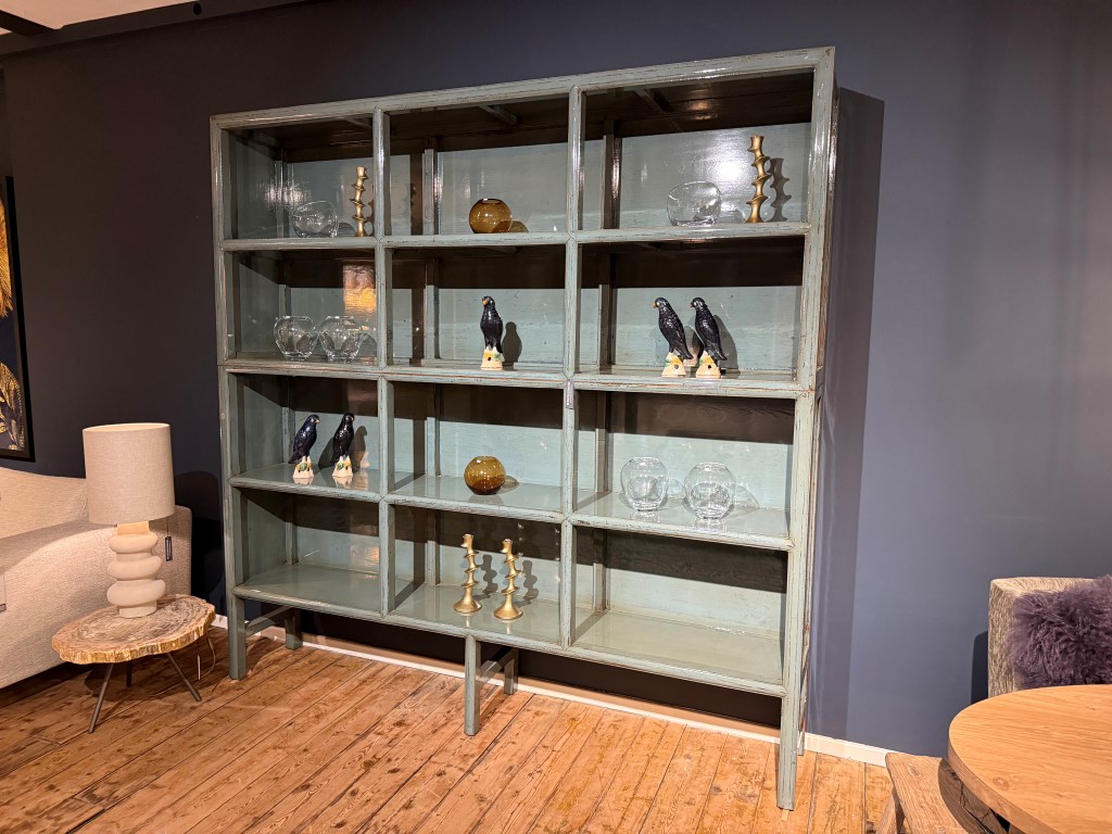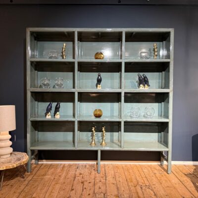 Open shelf ‘Portofino’, lacquered in turquoise. The cabinet is made of old pine wood and consists of 2 parts.