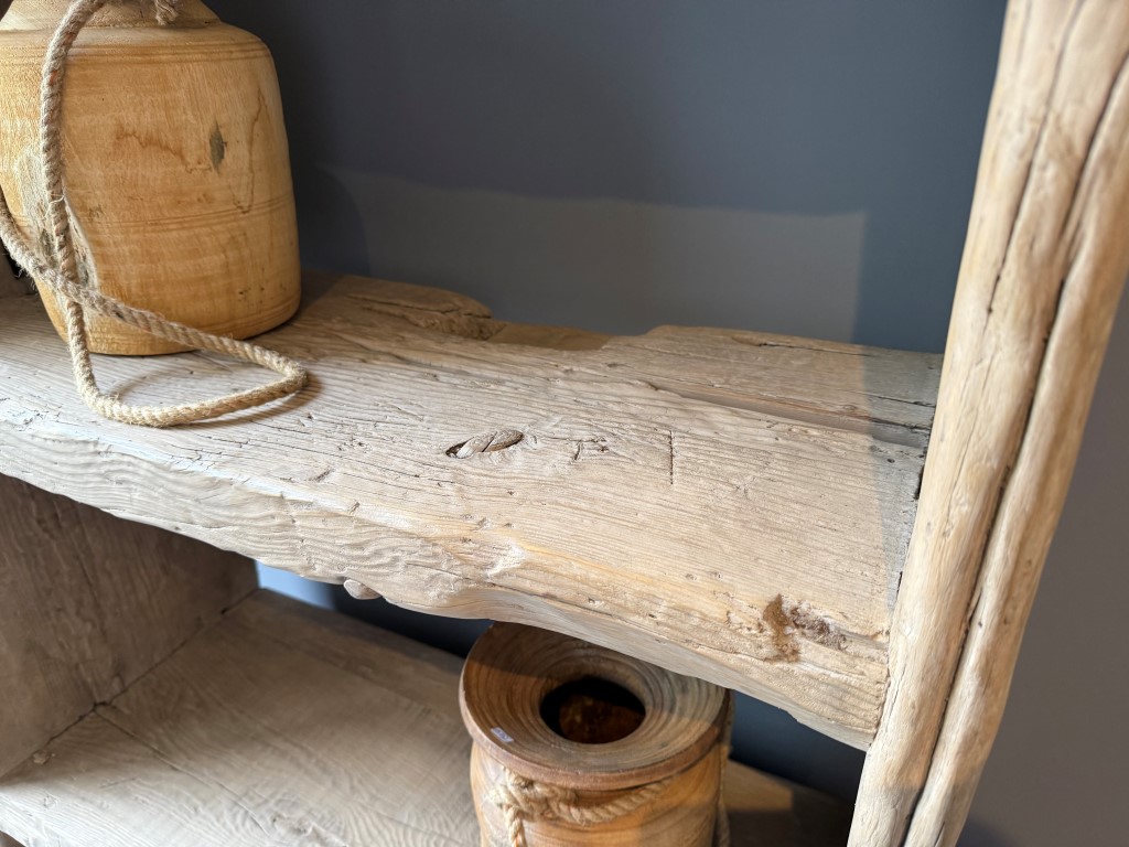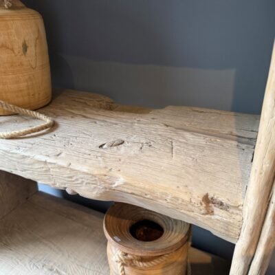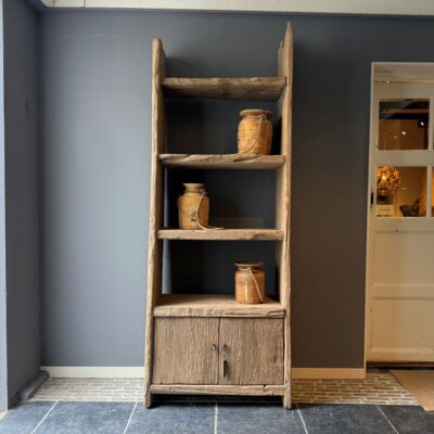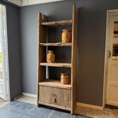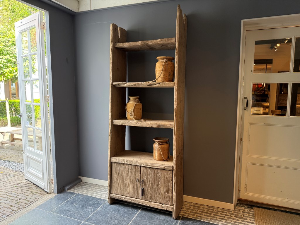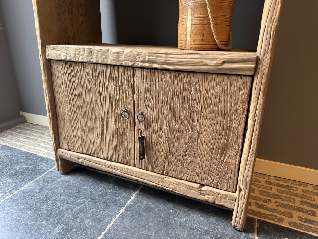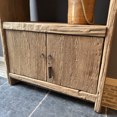 Open shelf “Stockholm” with 2 doors, made of coarse elm wood.