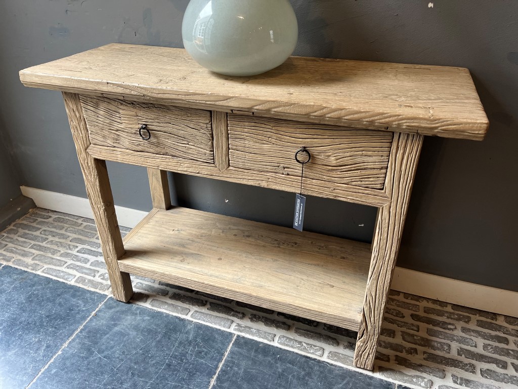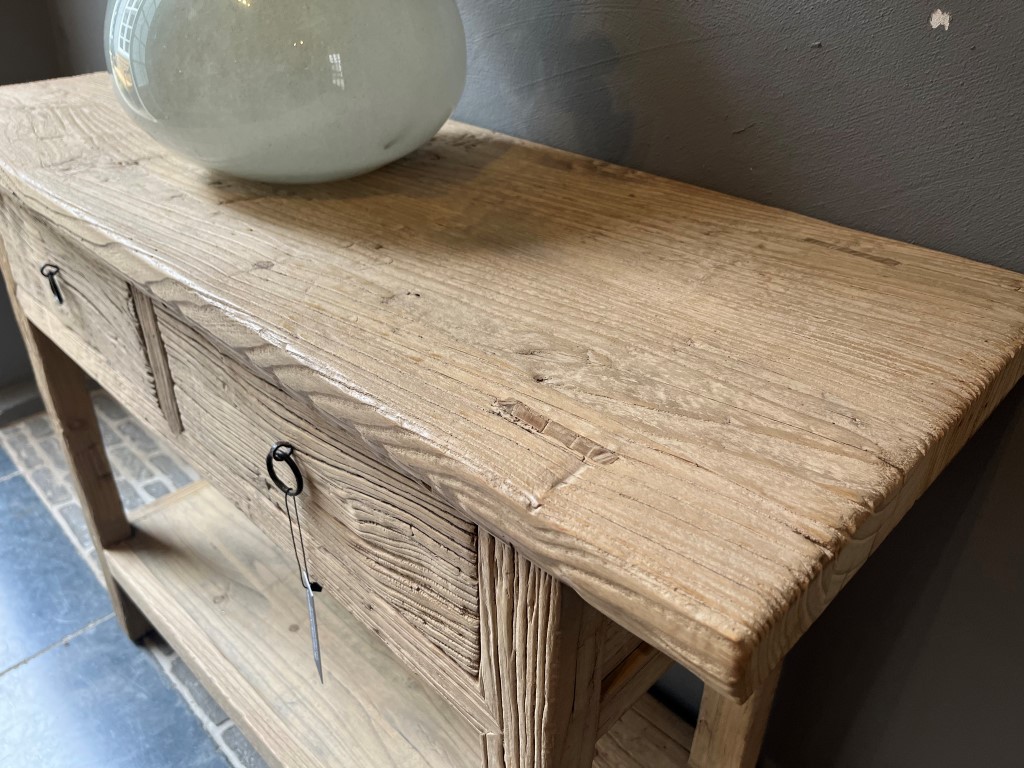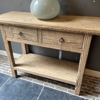 Console table ‘Cervia’ with 2 drawers and a bottom shelf, made of elmwood.
