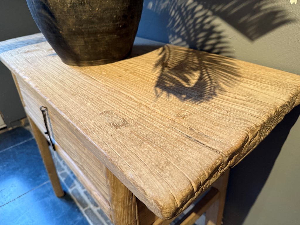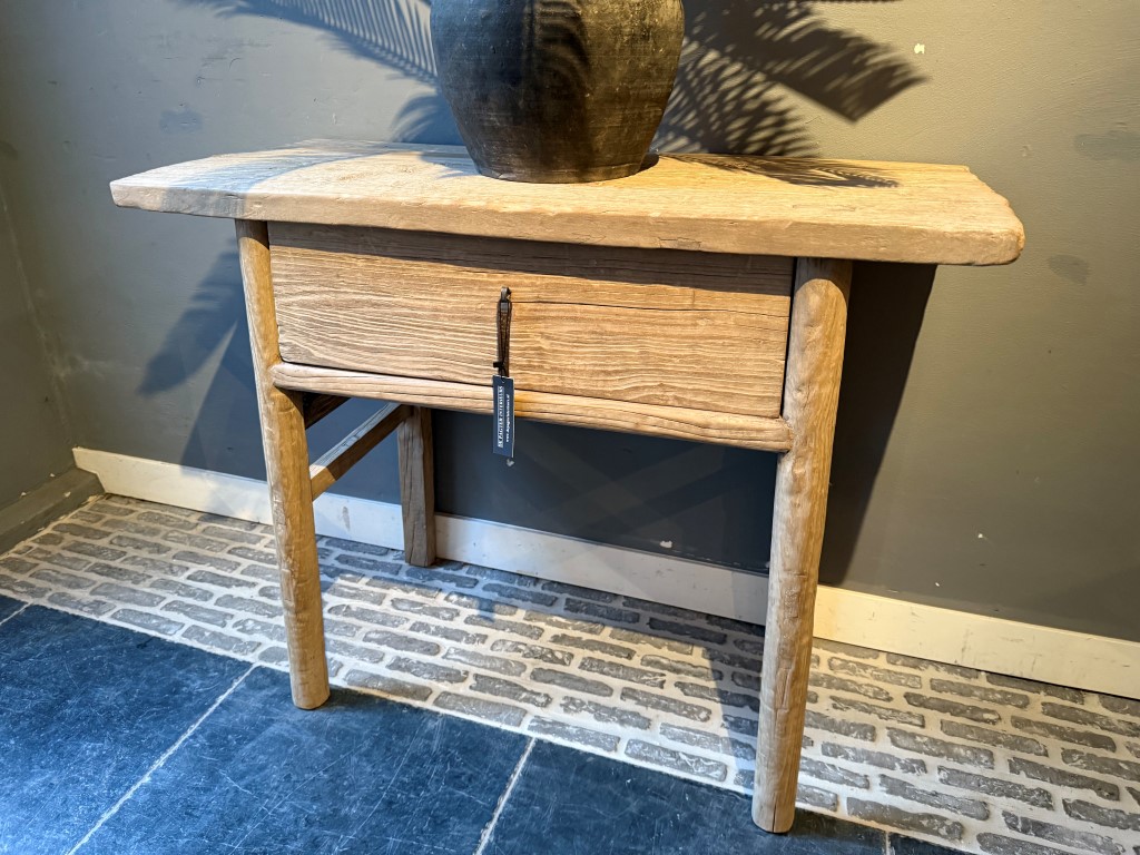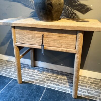 Console table ‘Paris’ with 1 drawer, made of elmwood. Also available with 2 drawers and a width of approx. 170 centimeters.