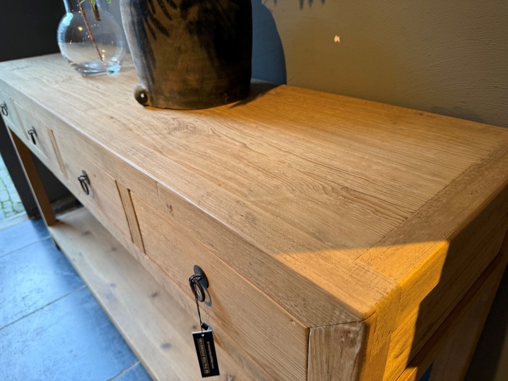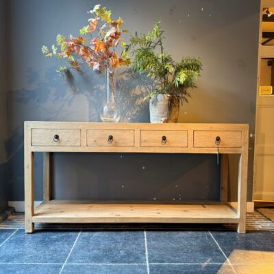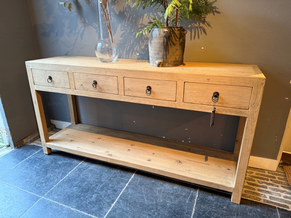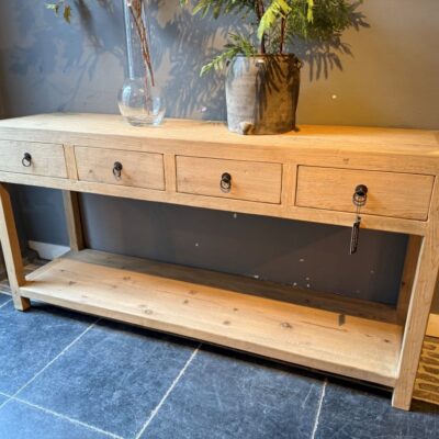 Console table ‘Savona’ with 4 drawers and a bottom shelf, made of old pine wood. Also I other sizes available.