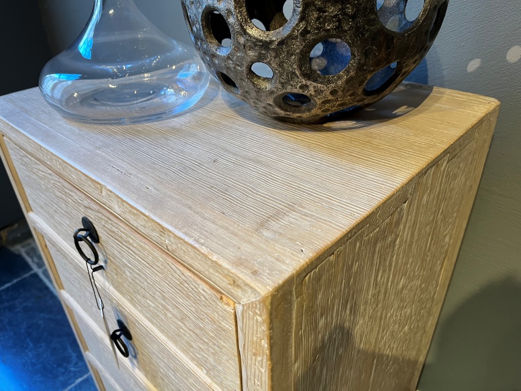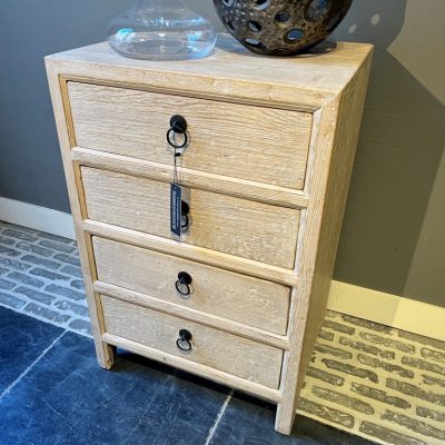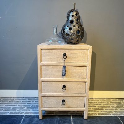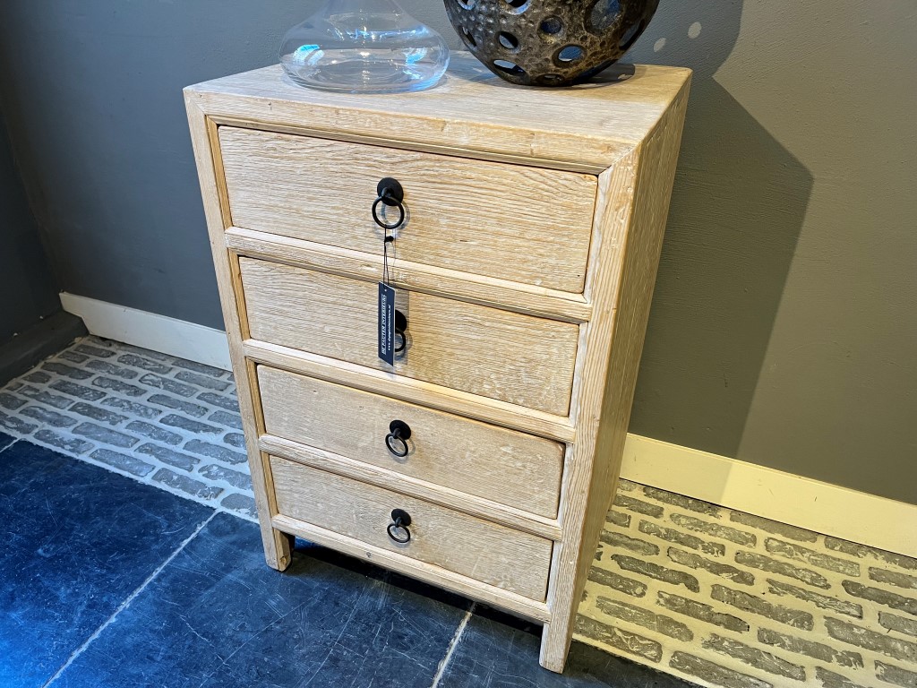 Nightstand ‘Granada’ with 4 drawers, made of old pine wood.