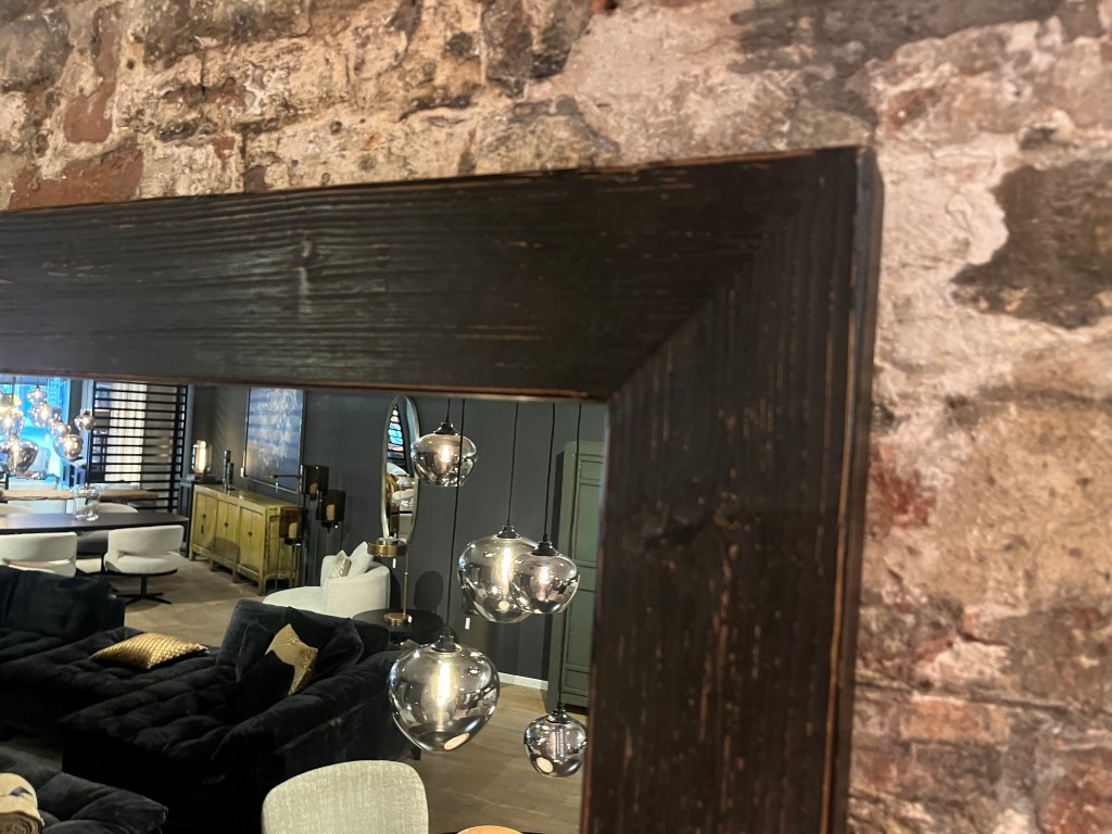Black mirror, made of old pine wood. Also available in natural elm wood.