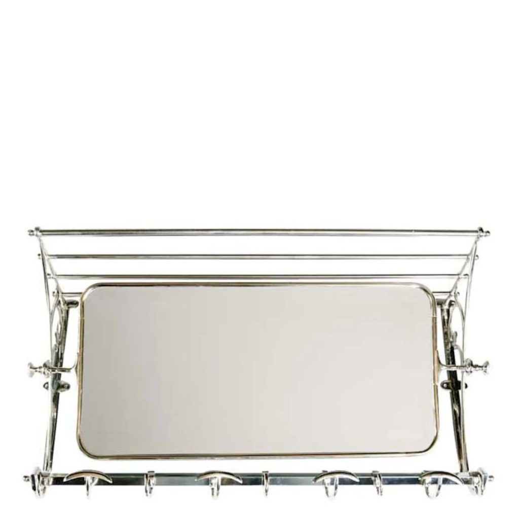 The brass-finished Hudson L Coat Rack is reminiscent of the luggage racks in old steam trains.