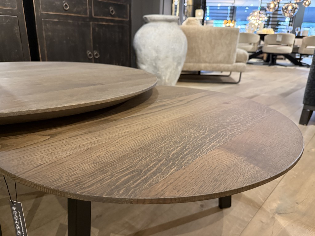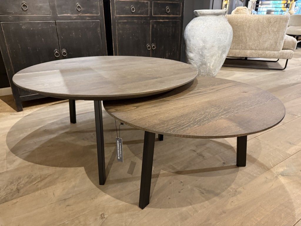 The coffee table Modena is made of oak wood, in the color Forrest and in the shape: Round 90CM & Round 70CM.