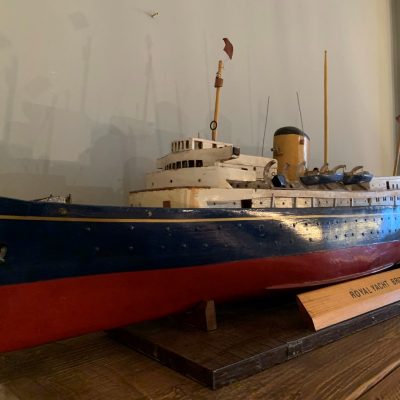 Model boat ‘Royal Yacht Britannia’, made of wood.